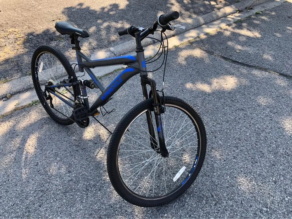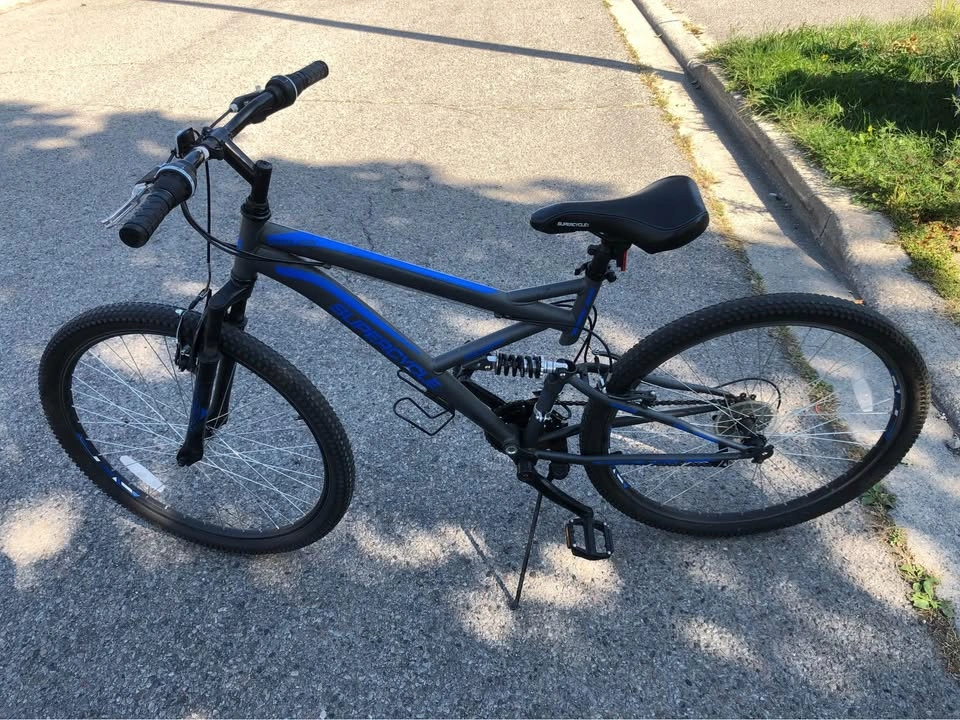 68Perfect for a first bike. $115 OBO. Tire size: 27.5 Target height: 5’9” to 6’0” Midsection shock absorber makes this bike much more comfortable when going over patches of mismatched surface. Thicker wheels make it a utility even in winter due to higher traction. I’d suggest a standard tuneup if you want to get it for someone else otherwise it’s ready to go. Pickup near Steeles Ave & Middlefield Rd in Markham E.