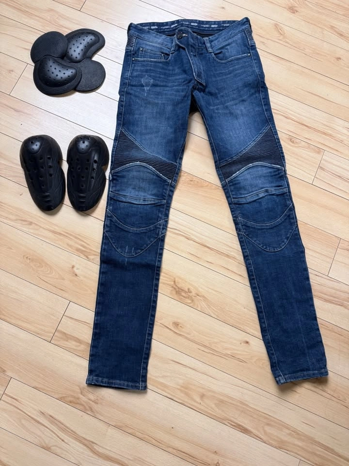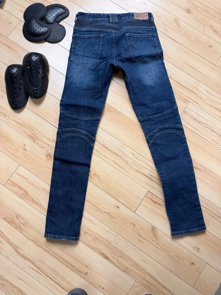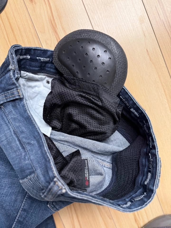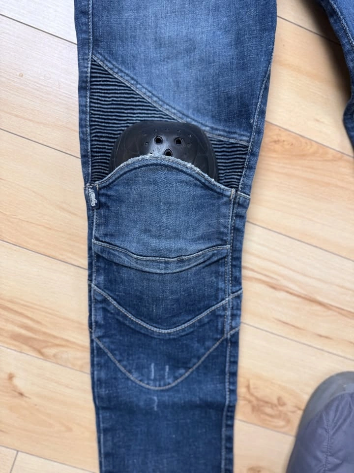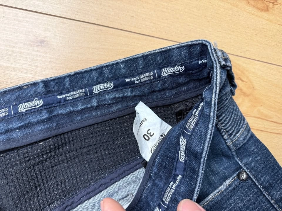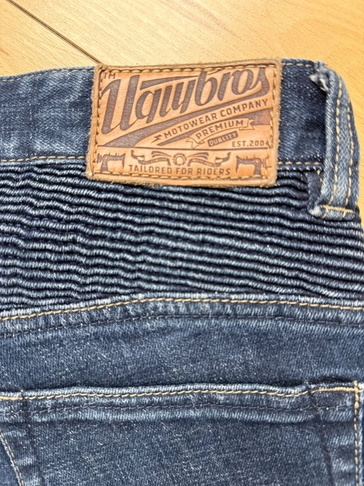 Only tried on for fitting. Too small for me. Never ridden in. Introducing Featherbed riding pants, the timeless 5-pocket riding jeans with the iconic uglyBROS design. Crafted from 12oz heavy-duty denim. Designed to accommodate impact protectors, the pants come with designated pockets for knee and hip inserts. For rider convenience, the knee insert pockets are easily accessible from the outside. The denim is expertly tailored to a slim straight fit, ensuring both style and comfort with its stretch weave. Moreover, elastic accordion panels on the knees and lower waist enhance mobility and comfort during your rides. The protector pockets accept CE-rated Powertector® protectors in knees and hips (Included).
