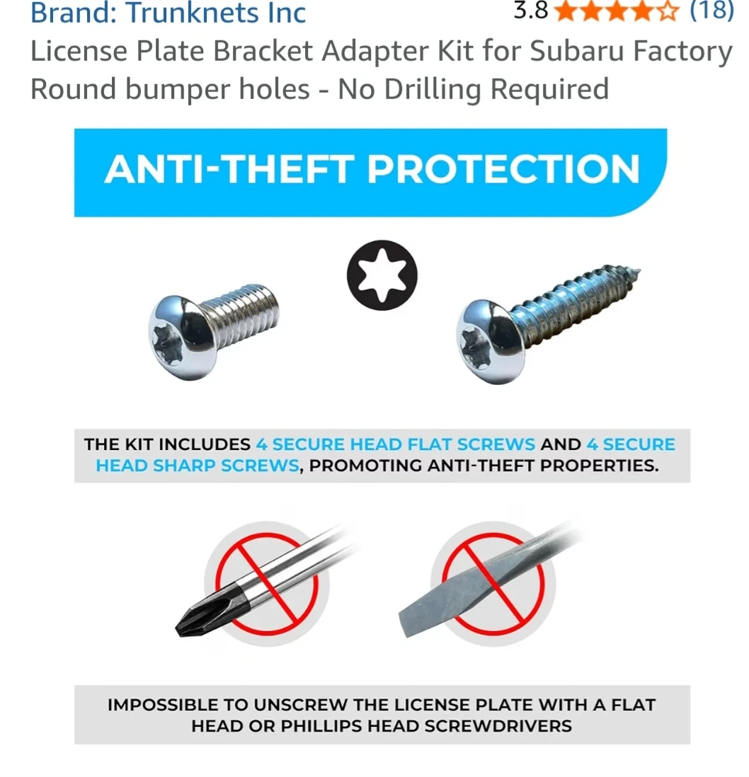 Trunknets Inc License Plate Bracket Adapter Kit for Subaru