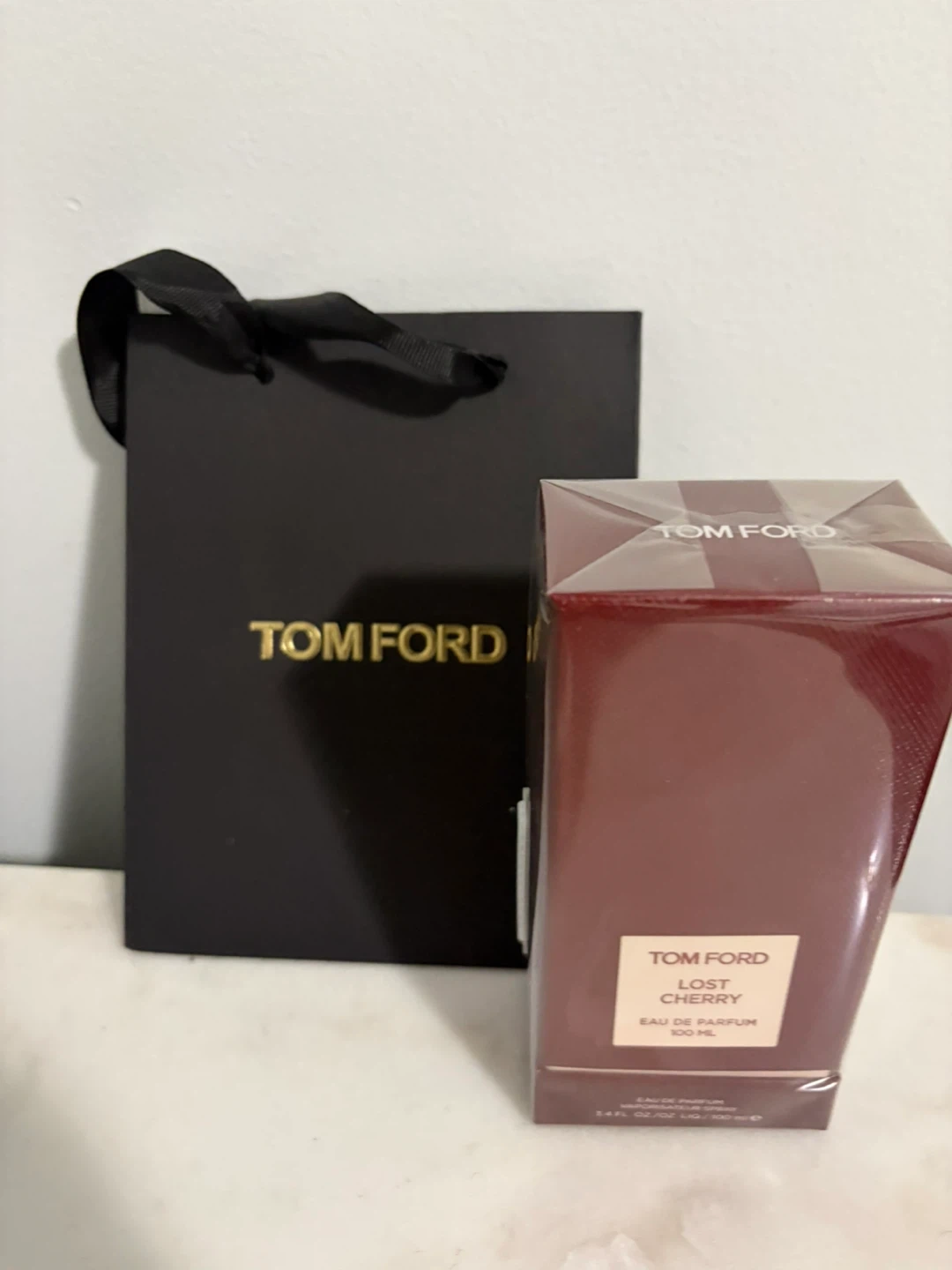 Tom Ford Lost Cherry Eau de Parfum. This fragrance comes in a 100 mL bottle. It includes the original packaging and a Tom Ford shopping bag.