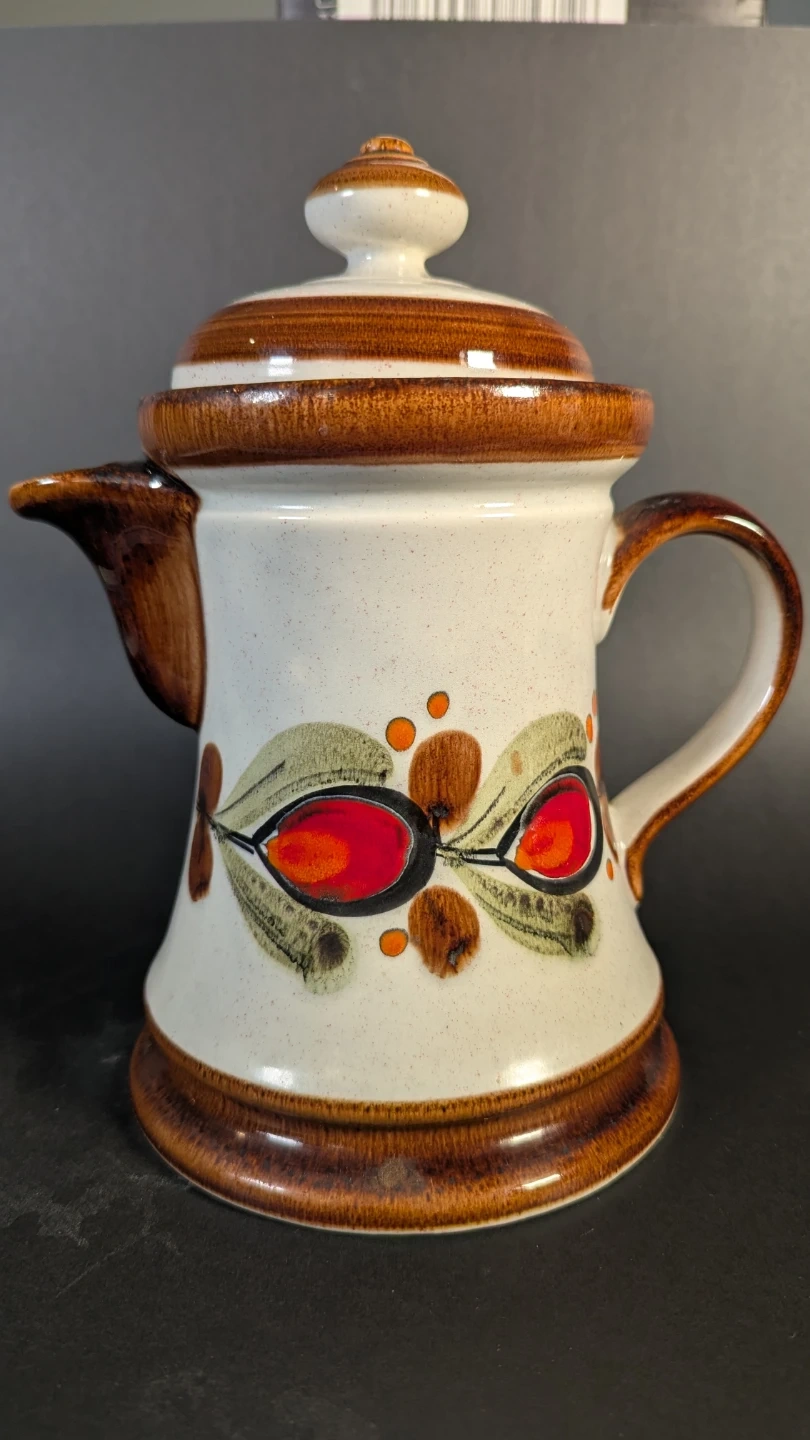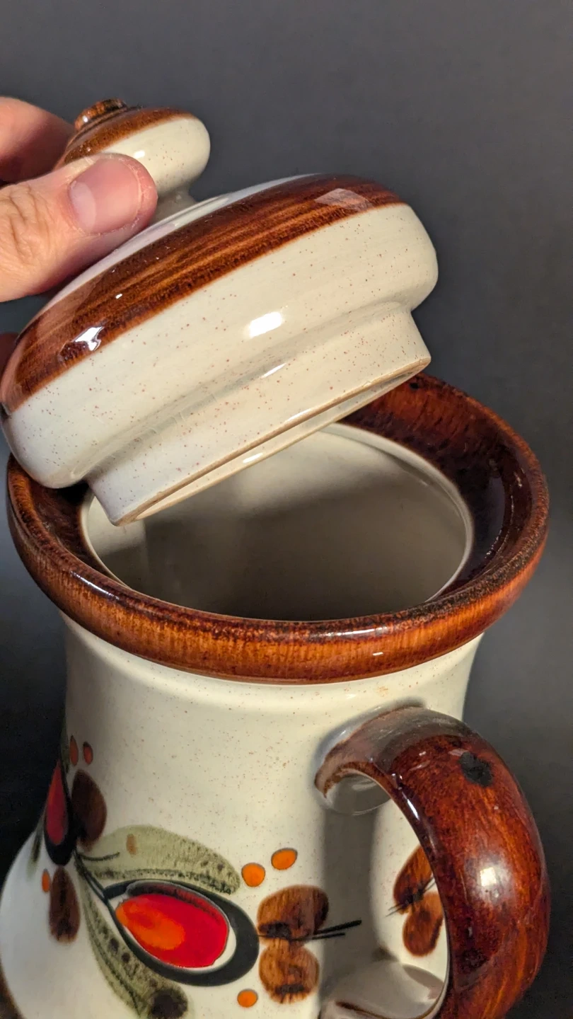 The rich greens, oranges, and browns are applied over a creamy textured base, making it a perfect addition to Mid-Century Modern (MCM) or "Cottagecore" decor.
