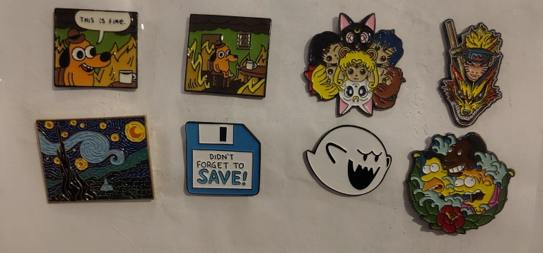 Selling a collection of cute and quirky enamel pins! There's a variety of designs, including: - "This is Fine" dog (meme) - Van Gogh's Starry Night - Sailor Moon cast - Naruto - The Simpsons - Pikachu - Red from Pokemon Perfect for decorating your backpack, jacket, or pin board! 12$/per pin but can bundle!