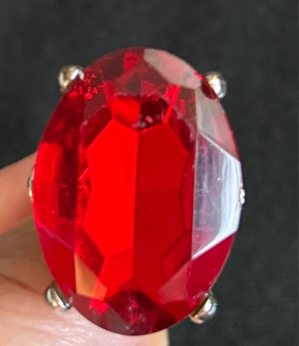 1000+A beautiful red stone ring with a silver-tone band. It's in great condition and ready for a new home! Check out photos provided. Smoke/Pet free home. Cash & Pick Up only.