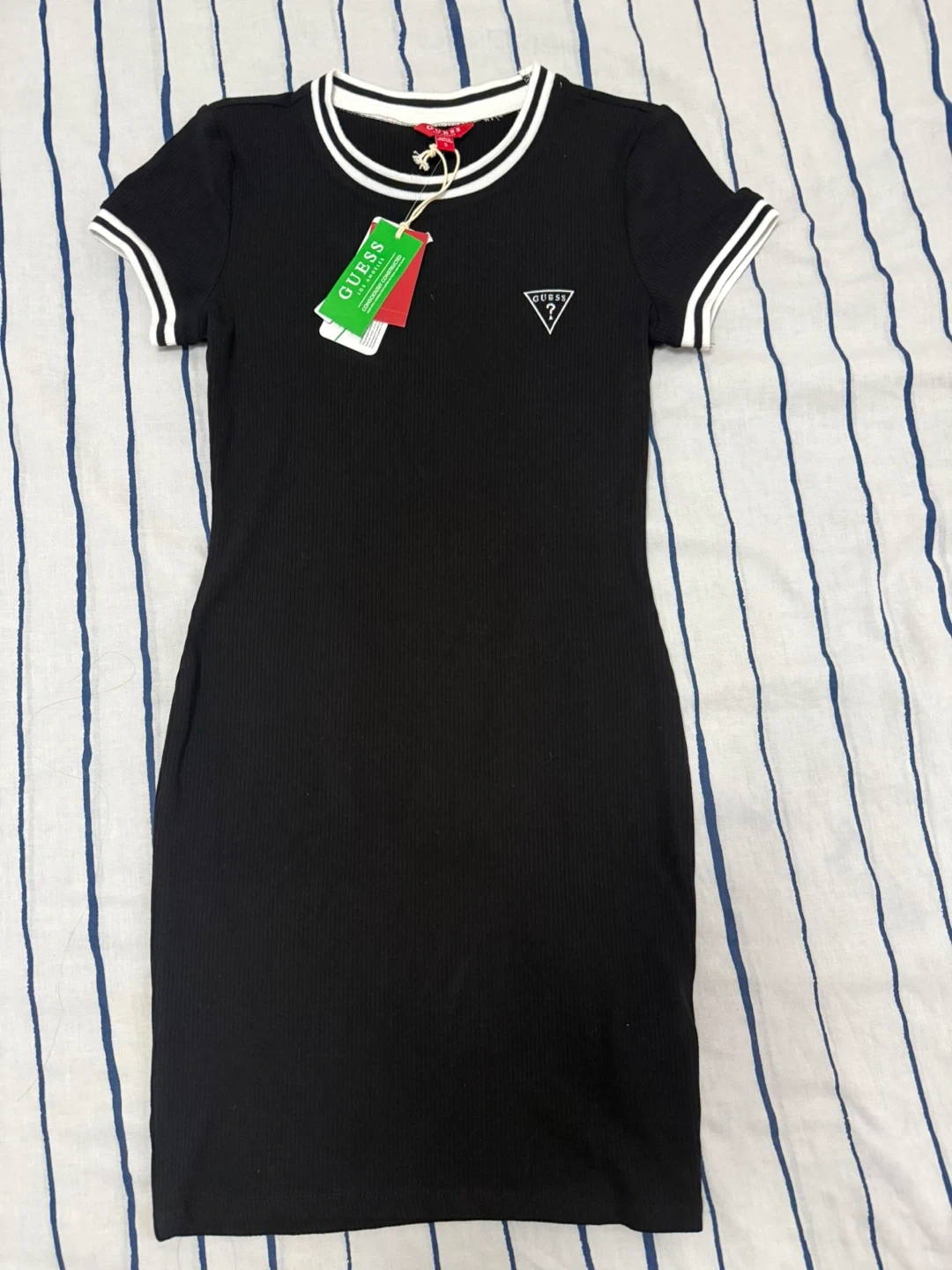 Selling a black Guess bodycon dress in size small. This is the Teddie Triangle Logo Dress in jet black.