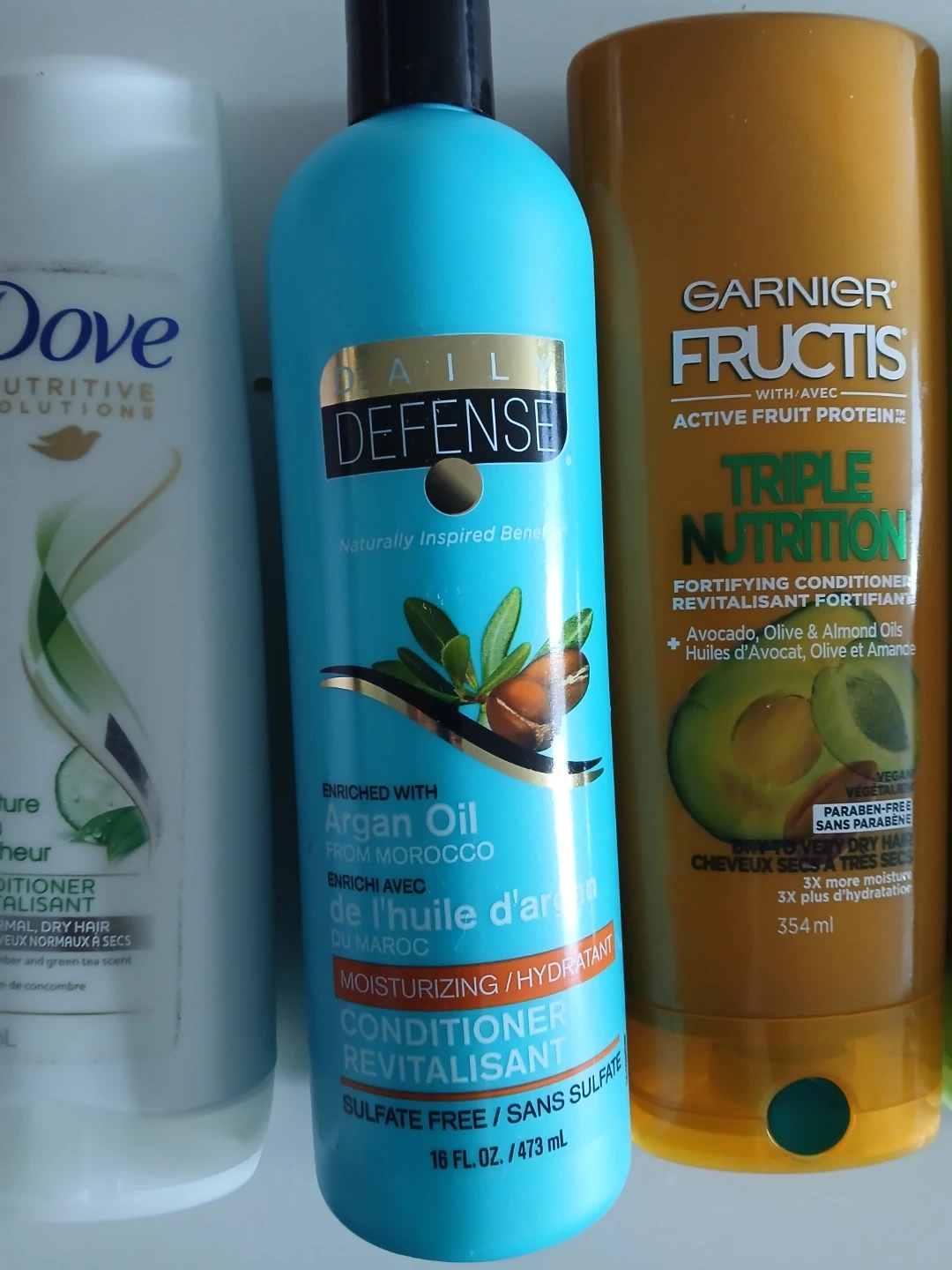 - Garnier Fructis triple nutrition with active fruit protein fortifying conditioner with avocado, olive and almond oils