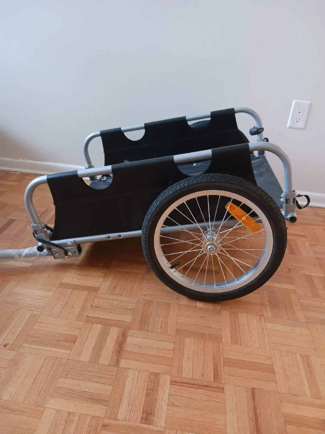 124Selling a bike cargo trailer in great condition! Perfect for carrying groceries, camping gear, or even the kids. It's lightweight and easy to attach to most bikes. Ready for your next adventure or trip to the market!