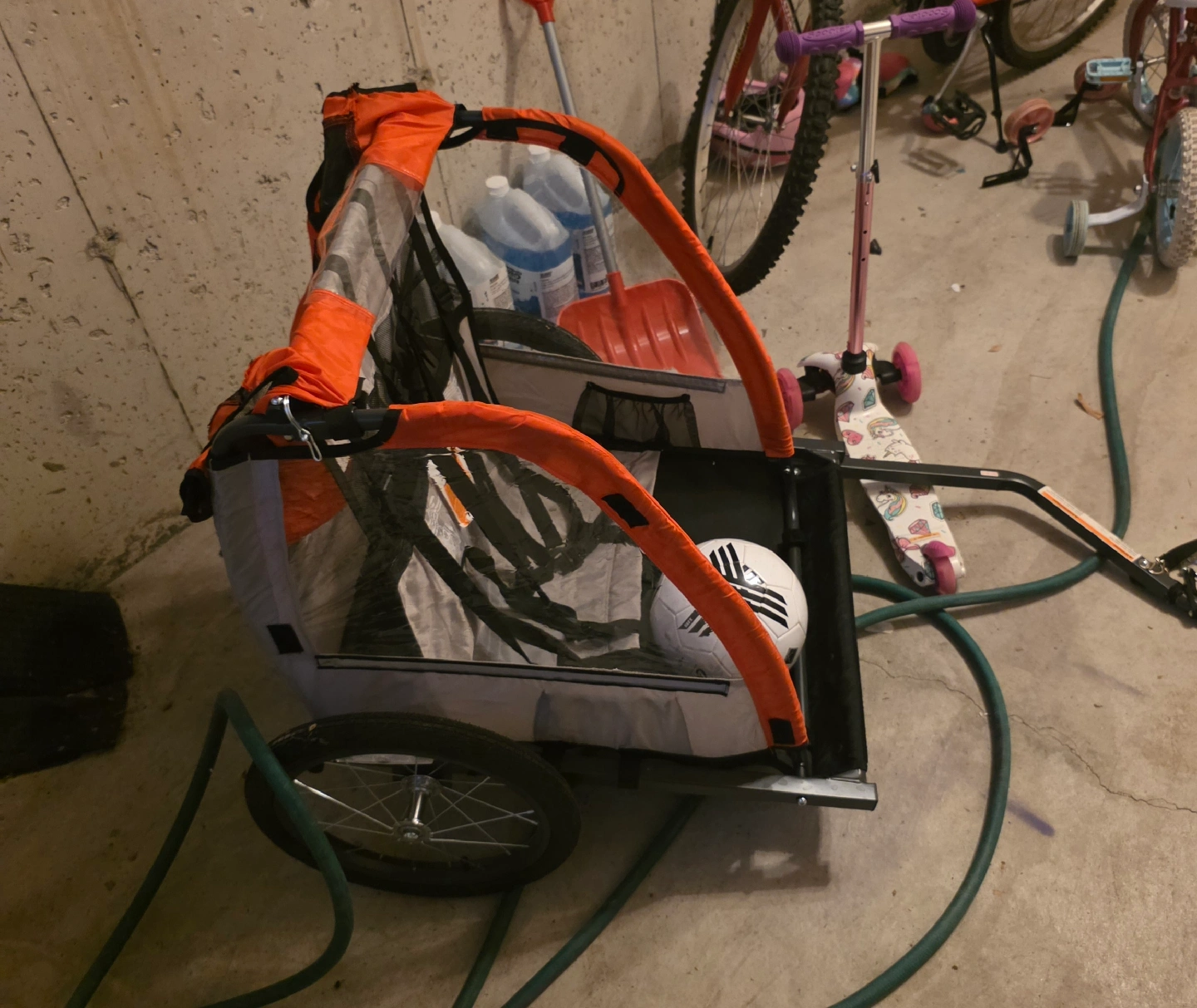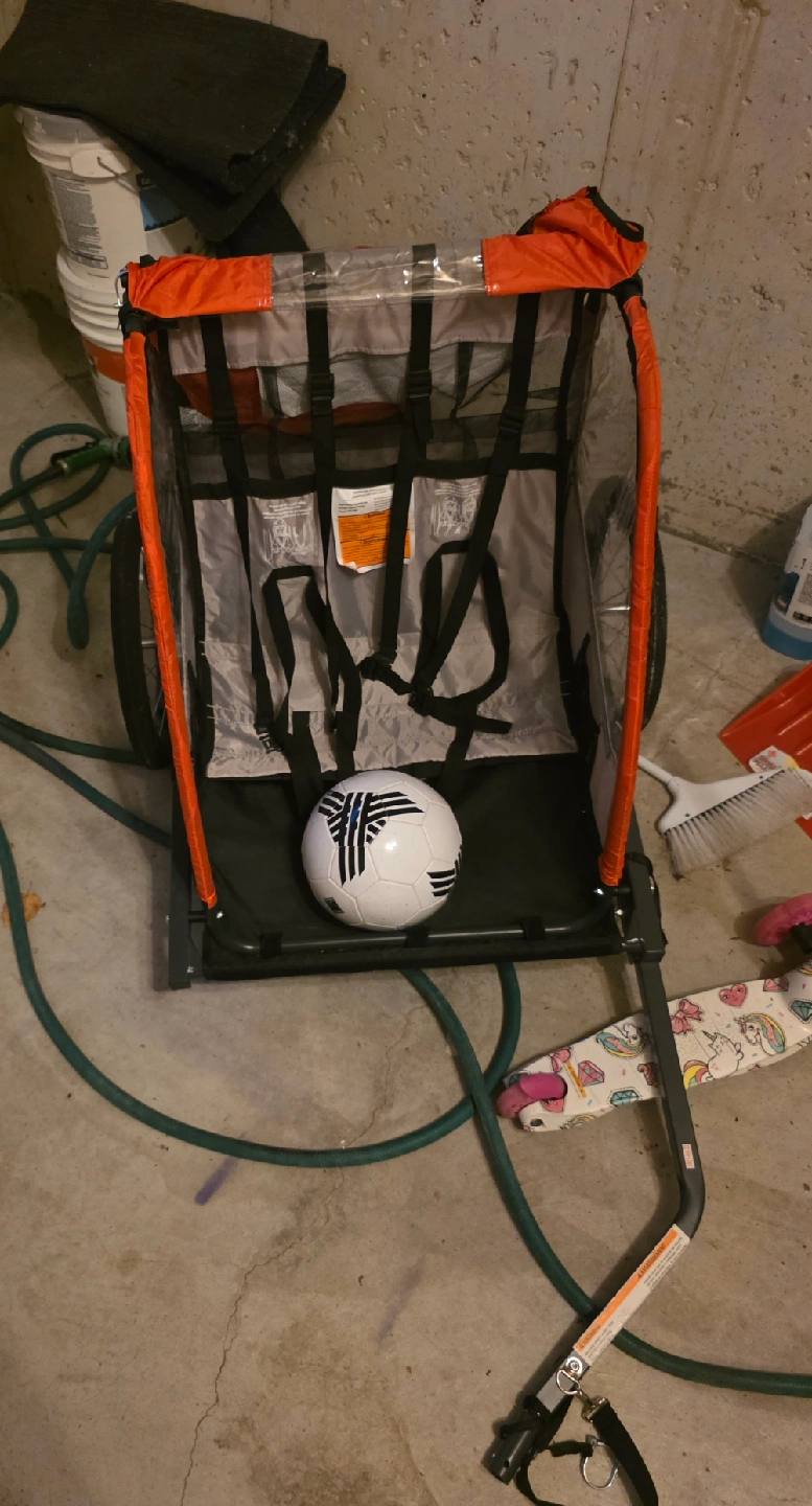 Bike carrier. Brand new - used only about dozen times. $150 OBO . Pick up only. LOW ballers will be ignored. https://www.canadiantire.ca/en/pdp/raleigh-cruise-bike-trailer-toddlers-kids-red-1840775p.html The Raleigh Cruise Bike Trailer, Toddlers & Kids, Red, is an excellent choice for active families. This bicycle trailer features simple construction with comfortable two-passenger seating. Sturdy and durable, it has a rugged steel frame and 16 inches (40.6 cm) quick-release wheels. It's easy to assemble the trailer while the 2-step flat fold system enables easy storage when not in use. The double bike trailer is equipped with a 5-point safety harness system to ensure kids remain safe during the ride. Additionally, keep them protected from the elements with the full rain cover and a roll-up window.
