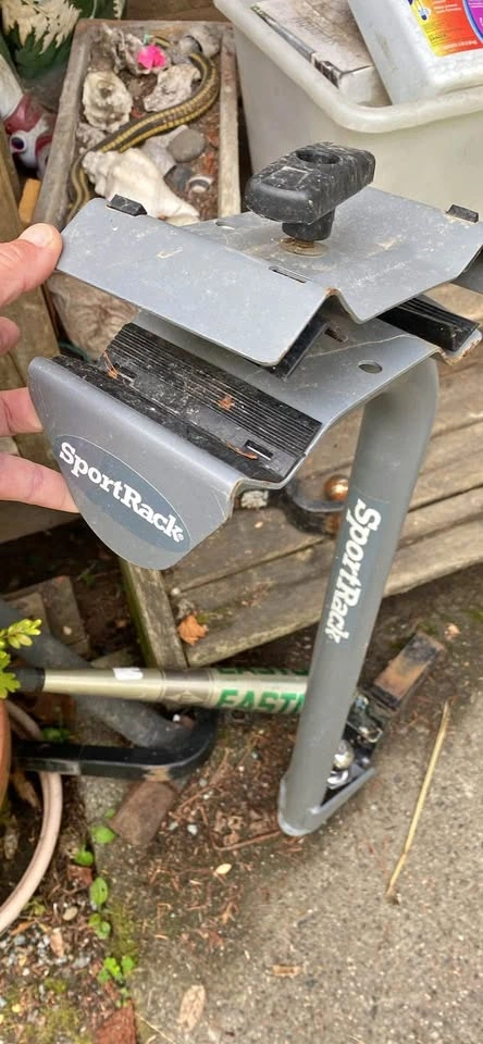 10Bike rack for two bikes that includes a hitch for a car (skinnier one pictured beside). The one currently attached is for a truck hitch but may be able to include if necessary. $125 obo
