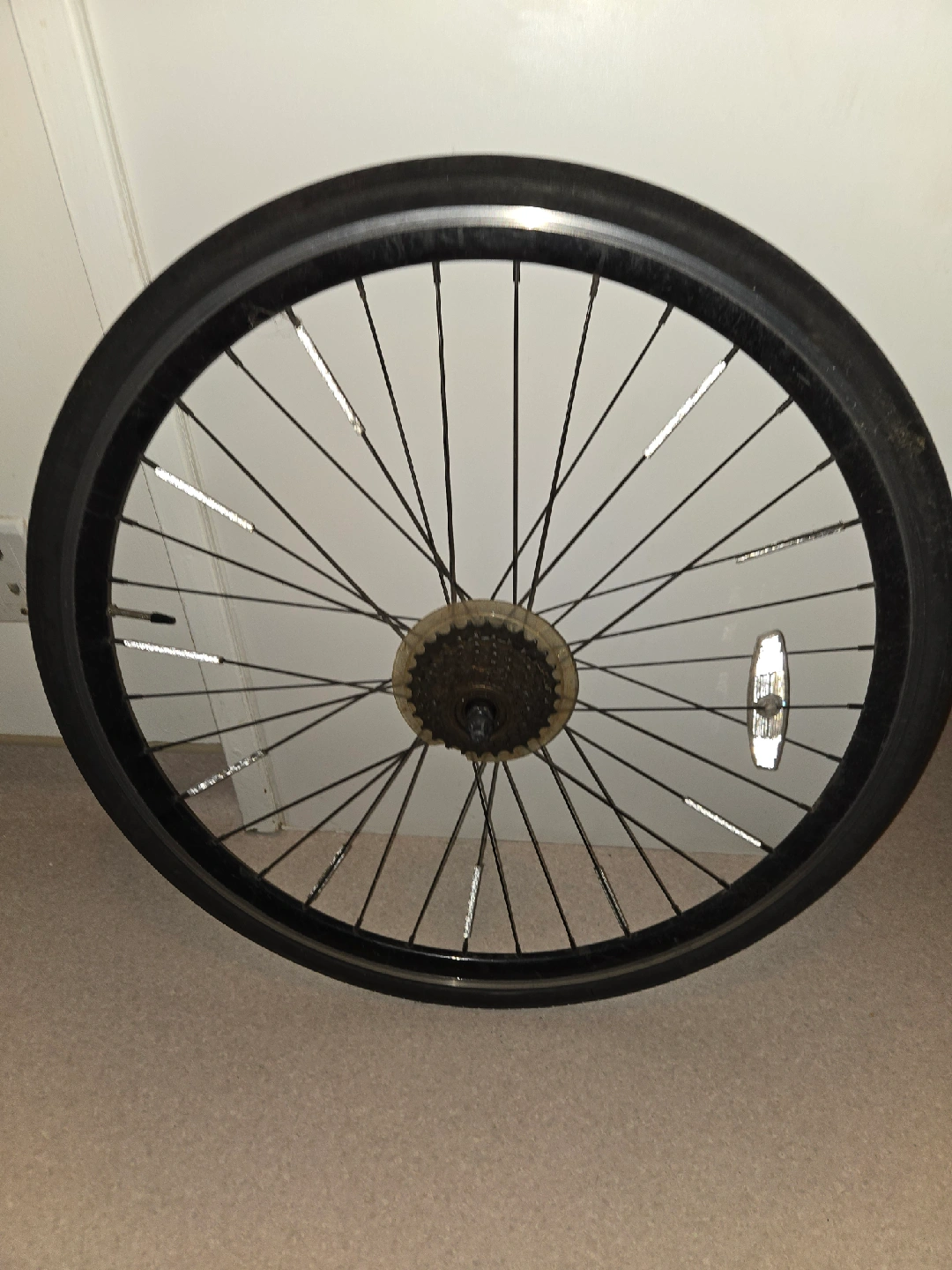 Selling a used bike wheel. It's in good condition and ready to be used on your bike. Tube and tire in good condition.