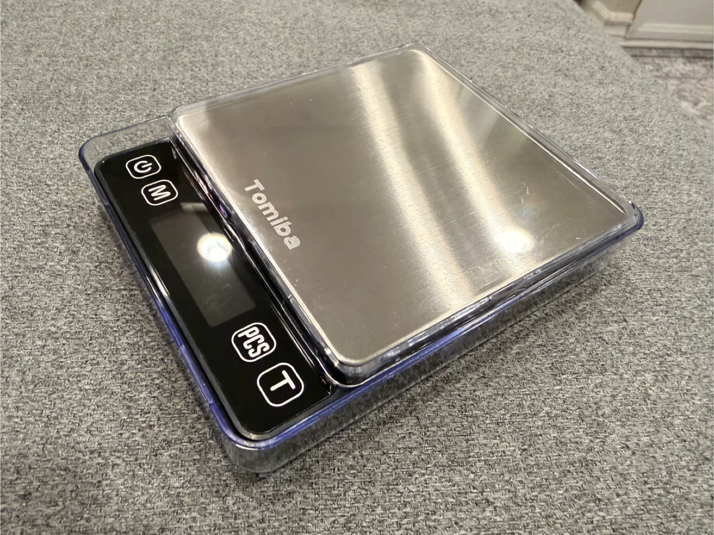 Compact and precise Tomiba Digital Touch Pocket Scale, perfect for cooking, baking, meal prep, coffee, or fitness tracking.