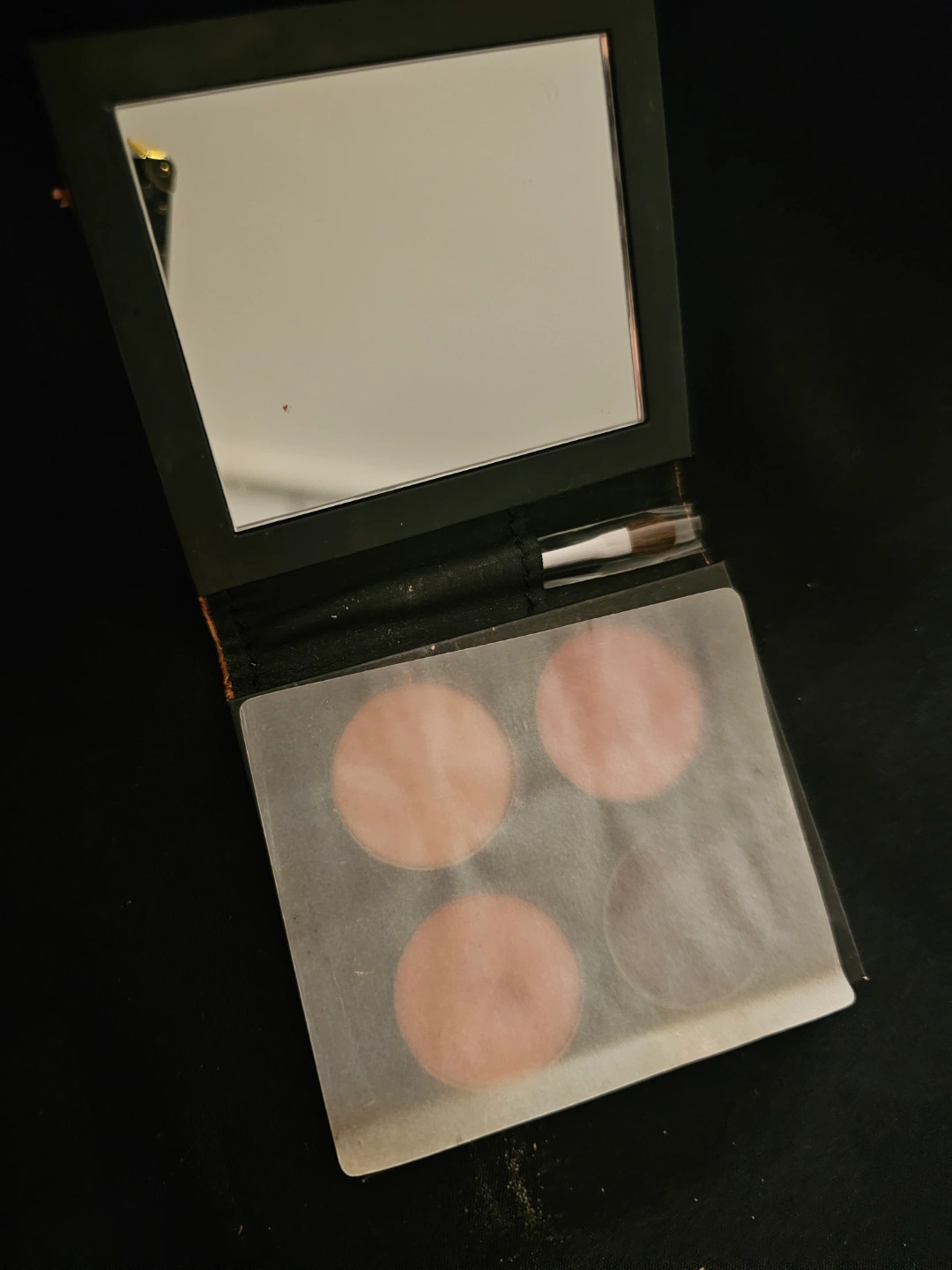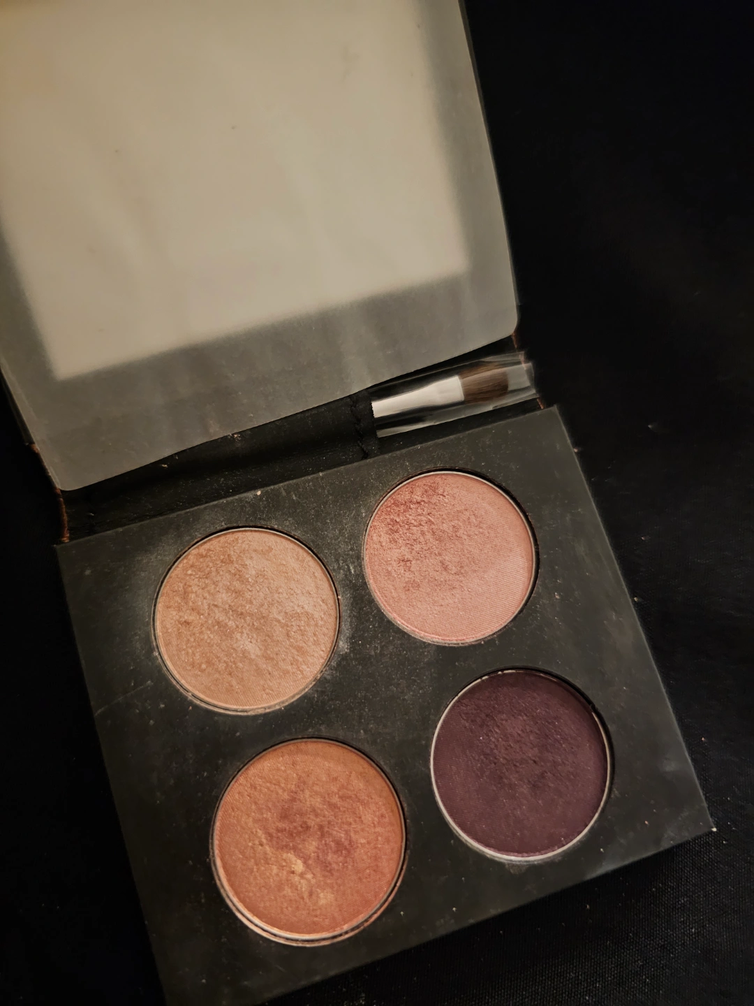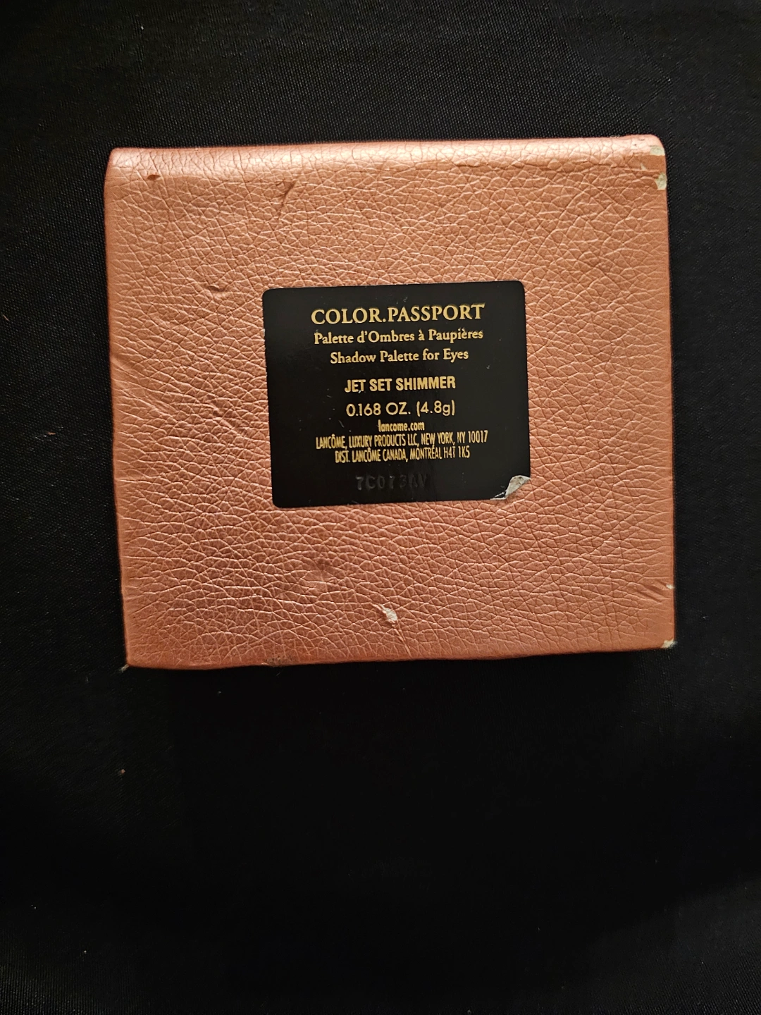 Pre-owned Lanc么me eyeshadow palette. Four shades included. Compact with mirror and applicator brush. Shows some wear.