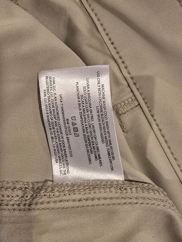 The Eddie Bauer Men's Tech Pants 137013 in size XL are versatile pants designed for travel, casual wear, and business occasions. Made from lightweight and comfortable nylon microfiber fabric, these chino-style pants feature a mid-rise and a straight leg fit. With a 5-pocket design and a button and zipper closure, these pants are easy to care for with machine washable instructions. The beige color and solid pattern make them a classic wardrobe staple suitable for all seasons. Additionally, the Eddie Bauer Travex product line ensures quality and durability in outdoor-themed fashion.