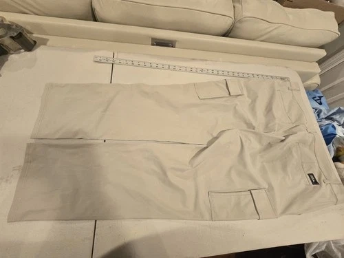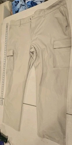 The Eddie Bauer Men's Tech Pants 137013 in size XL are versatile pants designed for travel, casual wear, and business occasions. Made from lightweight and comfortable nylon microfiber fabric, these chino-style pants feature a mid-rise and a straight leg fit. With a 5-pocket design and a button and zipper closure, these pants are easy to care for with machine washable instructions. The beige color and solid pattern make them a classic wardrobe staple suitable for all seasons. Additionally, the Eddie Bauer Travex product line ensures quality and durability in outdoor-themed fashion.