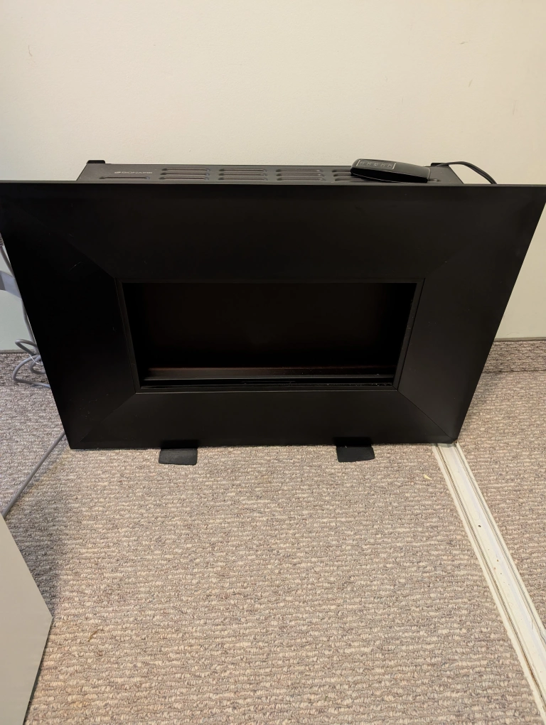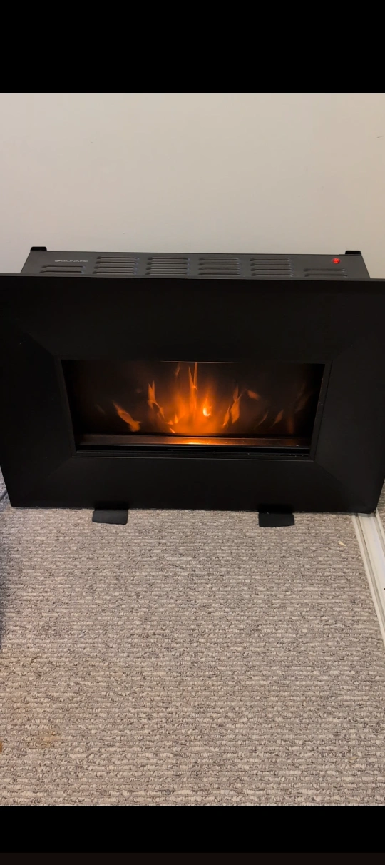 32" x 23 1/2" New Bionair electric fireplace in black. comes with a remote control. Perfect for adding some warmth and ambiance to your living space!