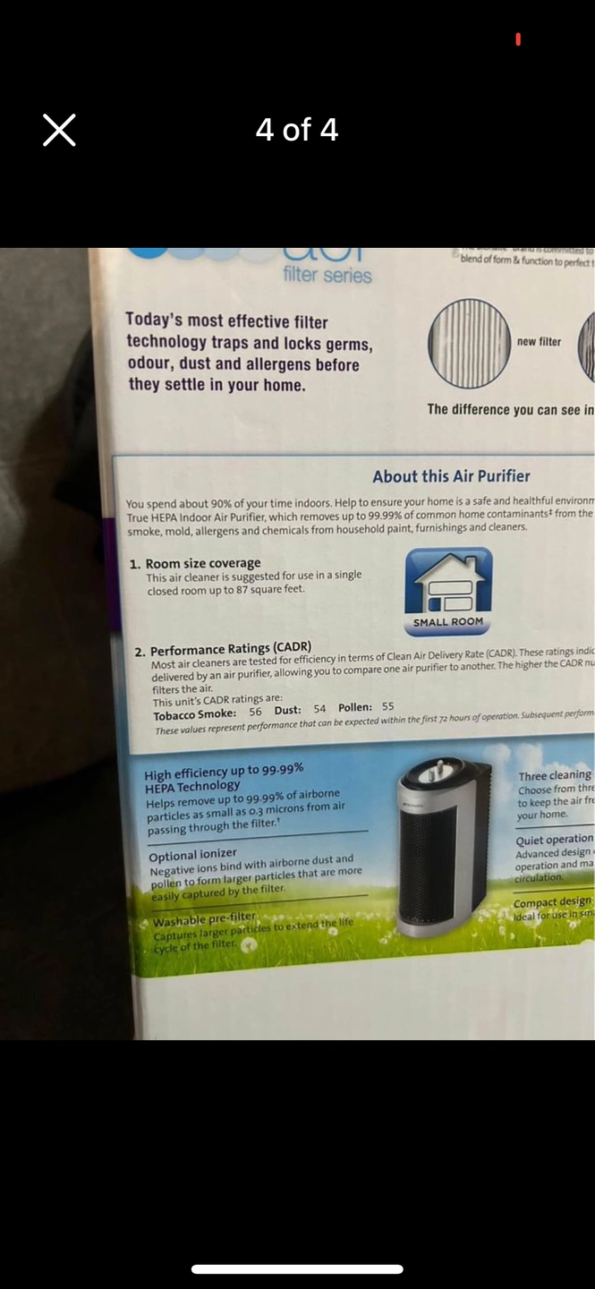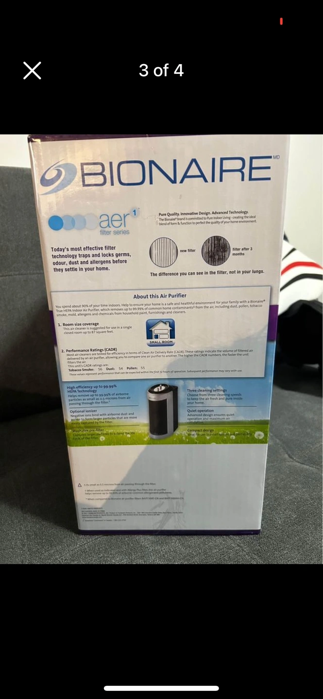 Sells for $100 in store/online For specifics: https://www.bionairecanada.com/en_CA/air-purification/air-purifiers/bionaire-99.99-true-hepa-mini-tower-air-purifier-with-allergy-plus-filter/BAP706BSC-CN.html