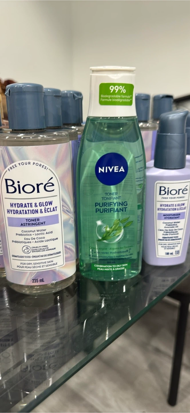 51I'm selling Biore Hydrate & Glow toner astringent (235ml) and Nivea Purifying toner. Have more skincare just ask all new