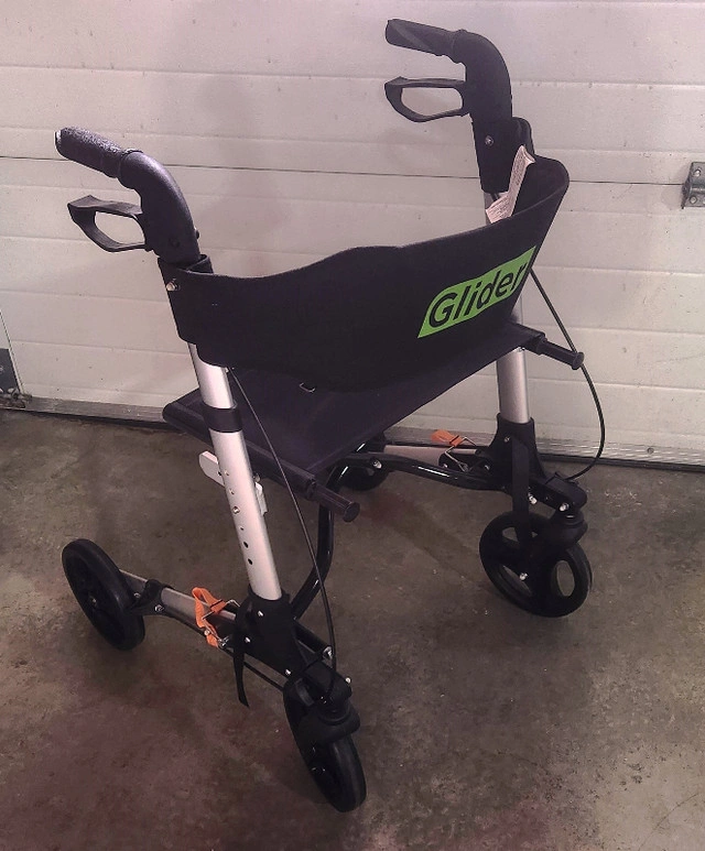 15Bios Living Glider Rollator/Walker (Model 56110) The BIOS Living Glider Rollator/Walker is an ideal travel walker as it is very light and easy to maneuver. The rollator/walker easily folds in half & it can further fold down as the wheels can be folded into the frame (see pictures), thus becoming very compact. It has an ample seat and backrest. The instruction manual is included. The rollator/walker is in excellent like new condition - everything works and there are no signs of wear. This rollator/walker retails new for $270 to $350 at various locations. Asking for $210 cash.