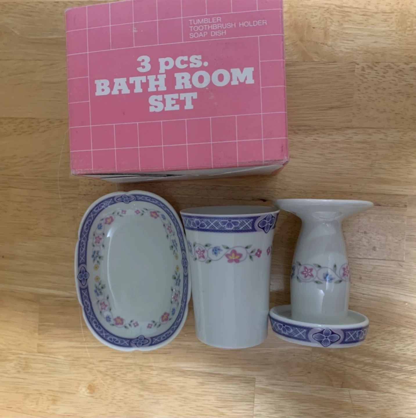 3-piece bath room set. Includes a soap dish, tumbler, and toothbrush holder.(brand : Shibata japon)