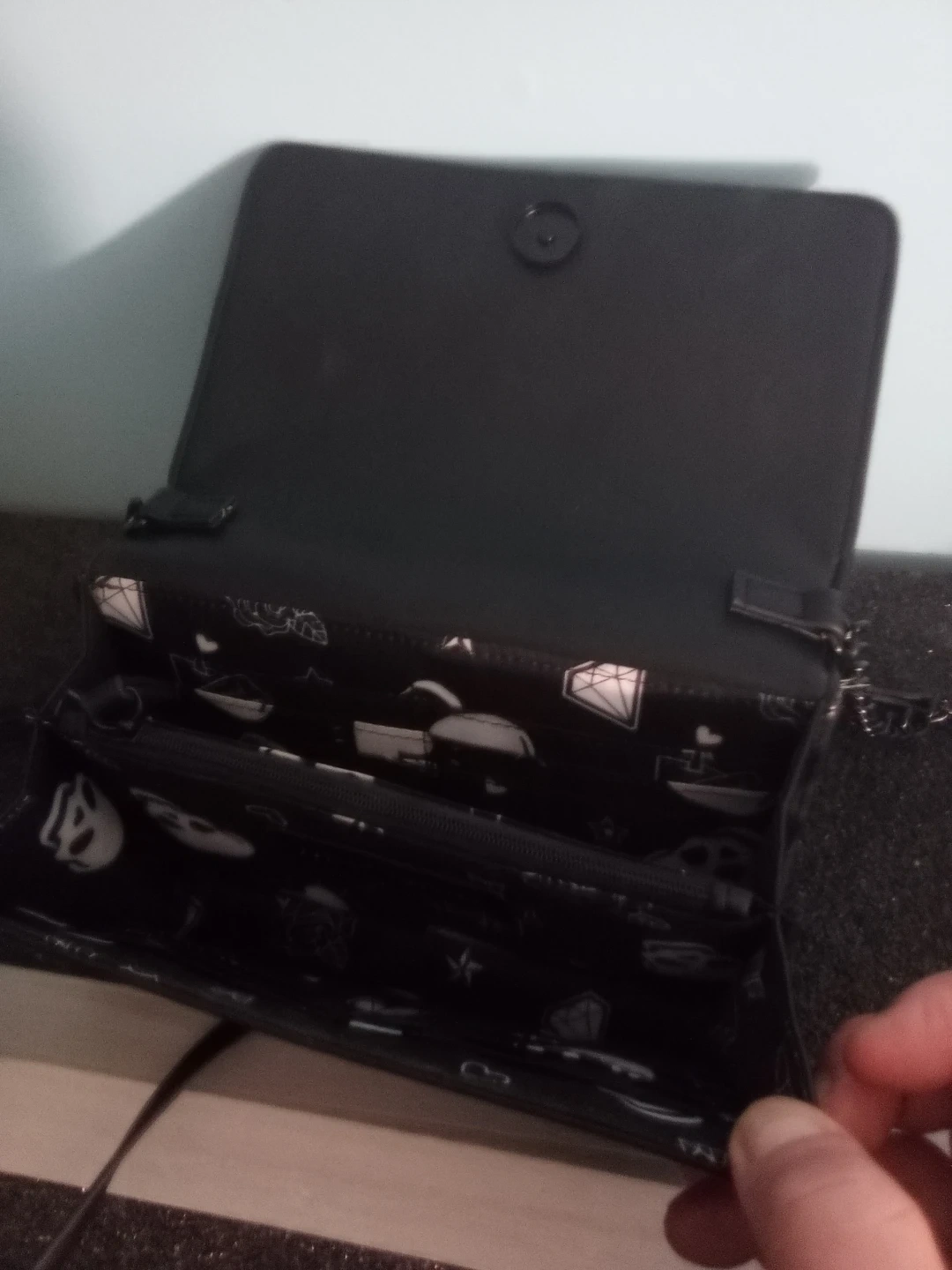 Here's a stylish Betsey Johnson black chain bag! It's in great condition and ready to add a touch of edgy elegance to your look