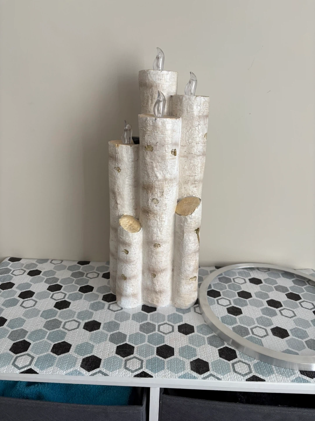 10Add a touch of rustic charm to your home with this birch log LED candle decor! It features multiple faux birch logs of varying heights, each topped with a flickering LED 'flame'. This piece brings a cozy and natural vibe to any room