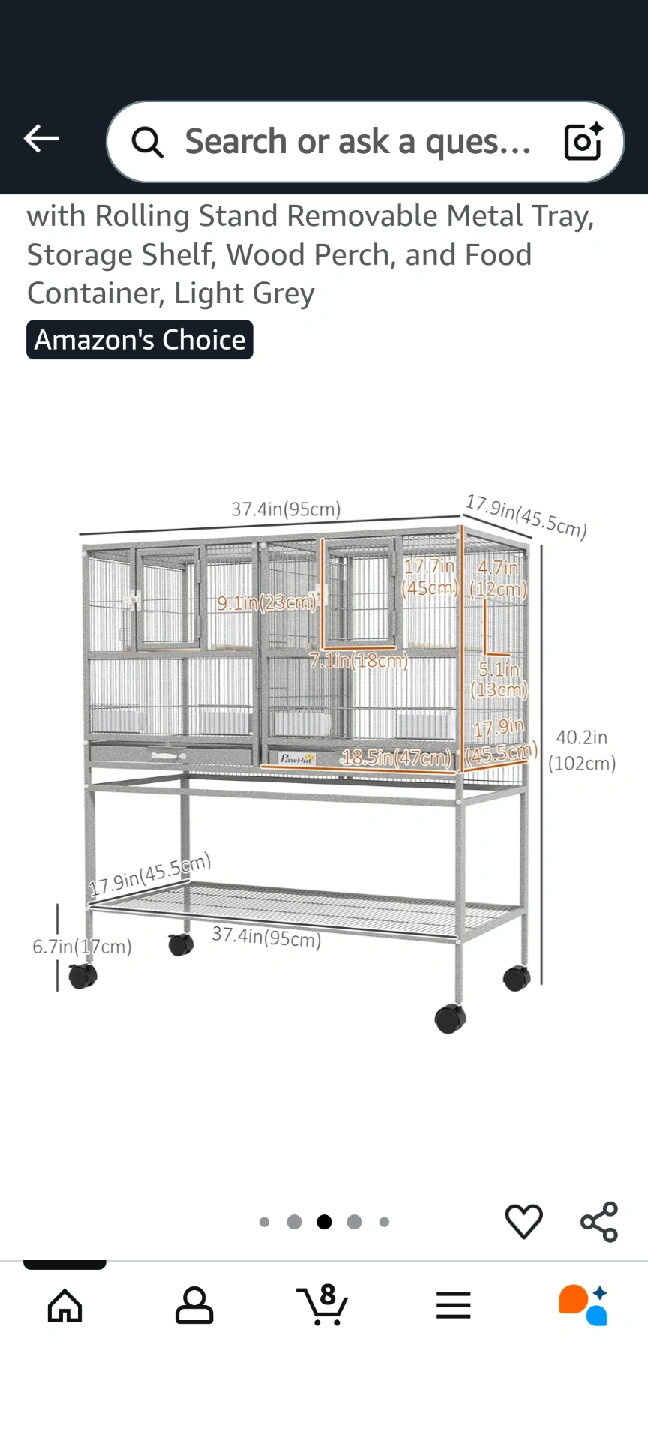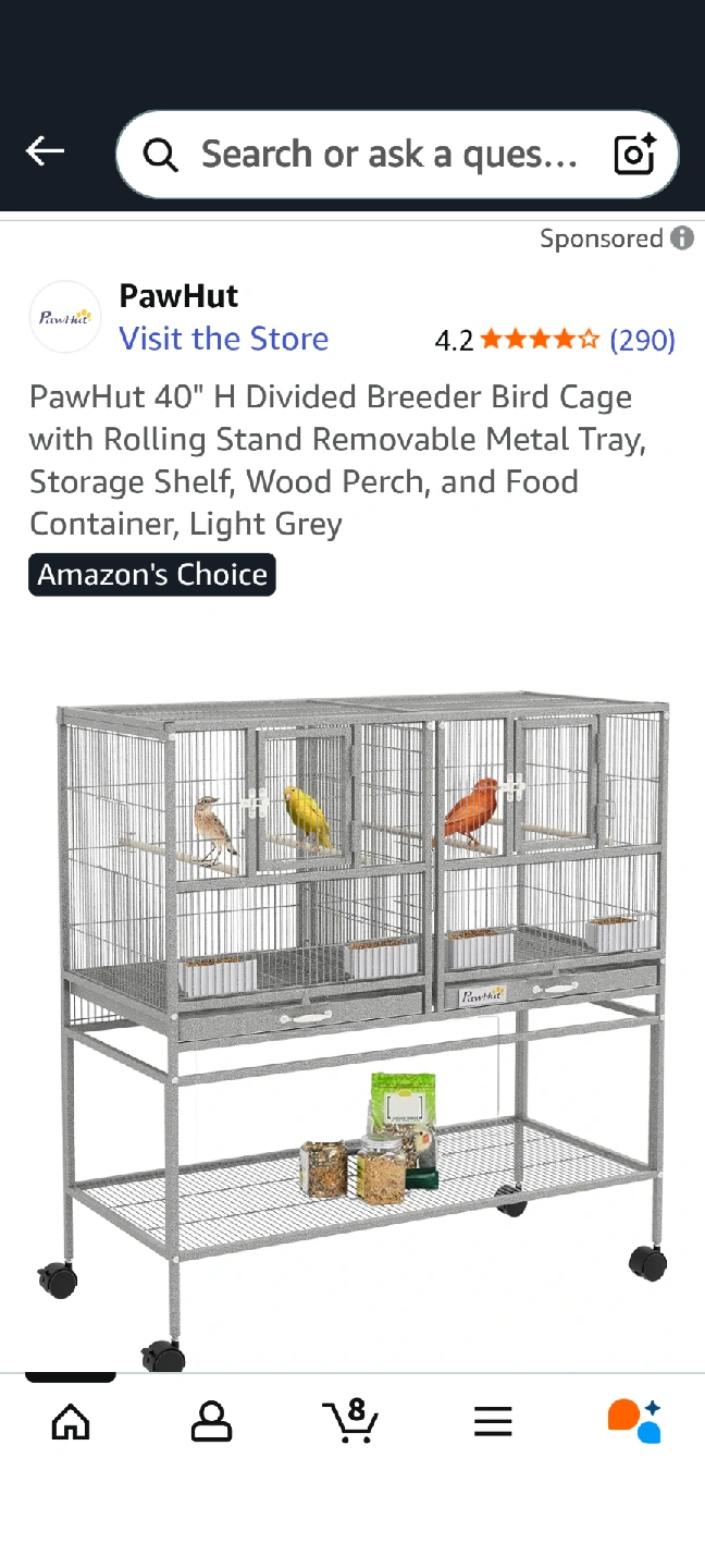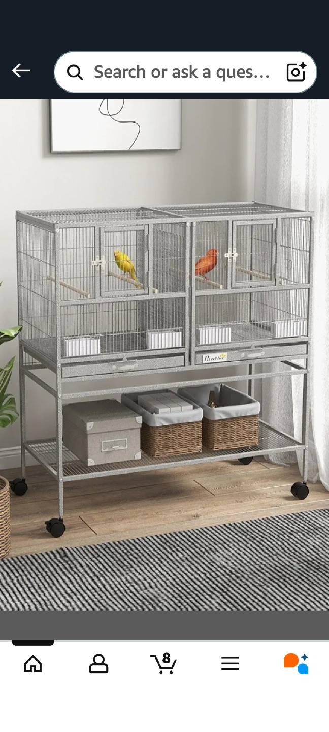 Selling a PawHut divided breeder bird cage in light grey! It's 40 inches tall and comes with a rolling stand. Key features: - Removable metal tray - Storage shelf - Wood perch - Food container Perfect for your feathered friends! new still in the box never been used delivery available within reasonable distance