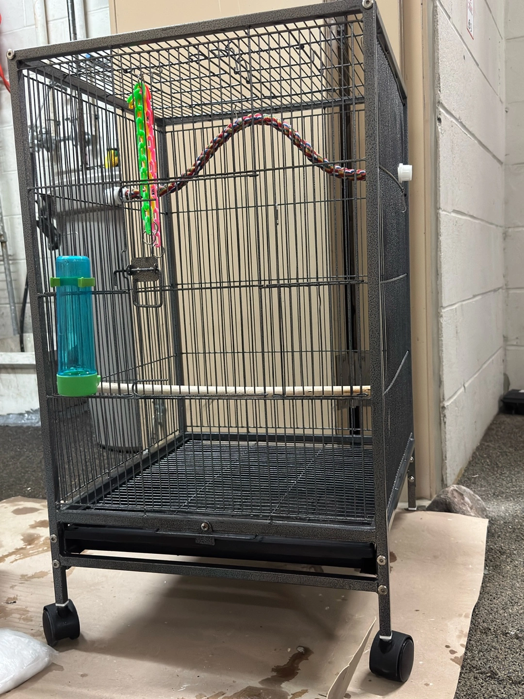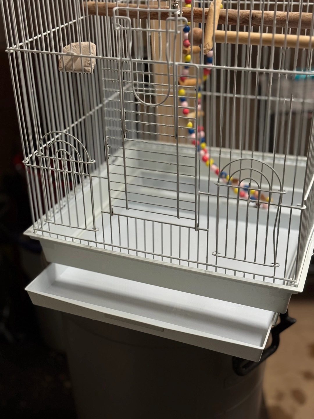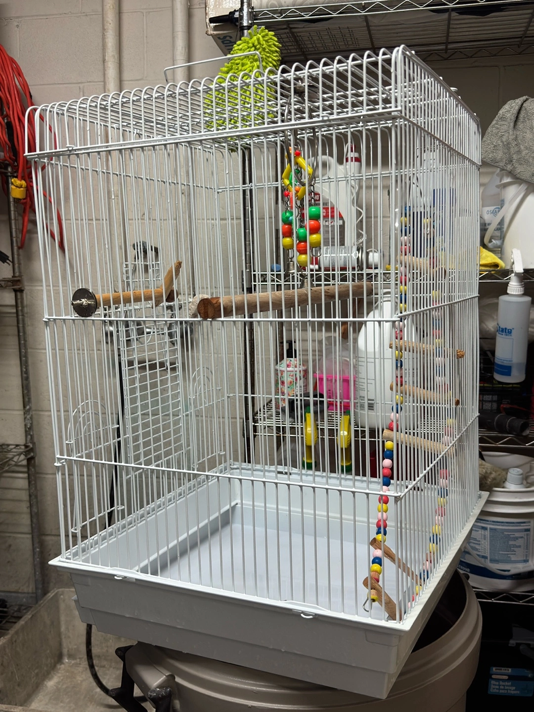96Selling a bird cage that's in great shape! It comes with a few accessories to keep your feathered friend happy and entertained. Perfect for small to medium-sized birds. It has a removable tray for easy cleaning Black cage: $120 White cage $80