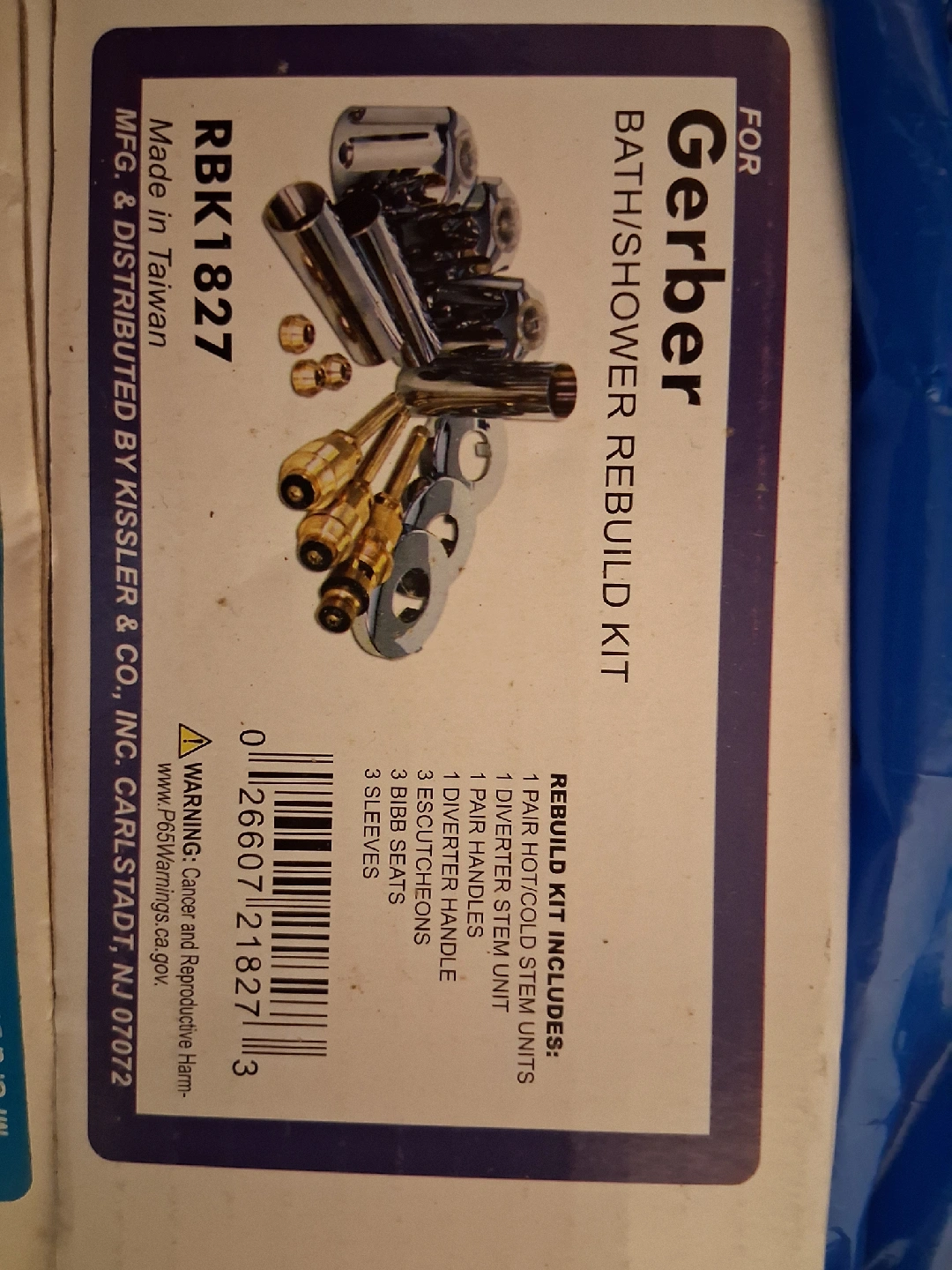 Selling a Gerber bath/shower rebuild kit, model RBK1827. The kit includes: