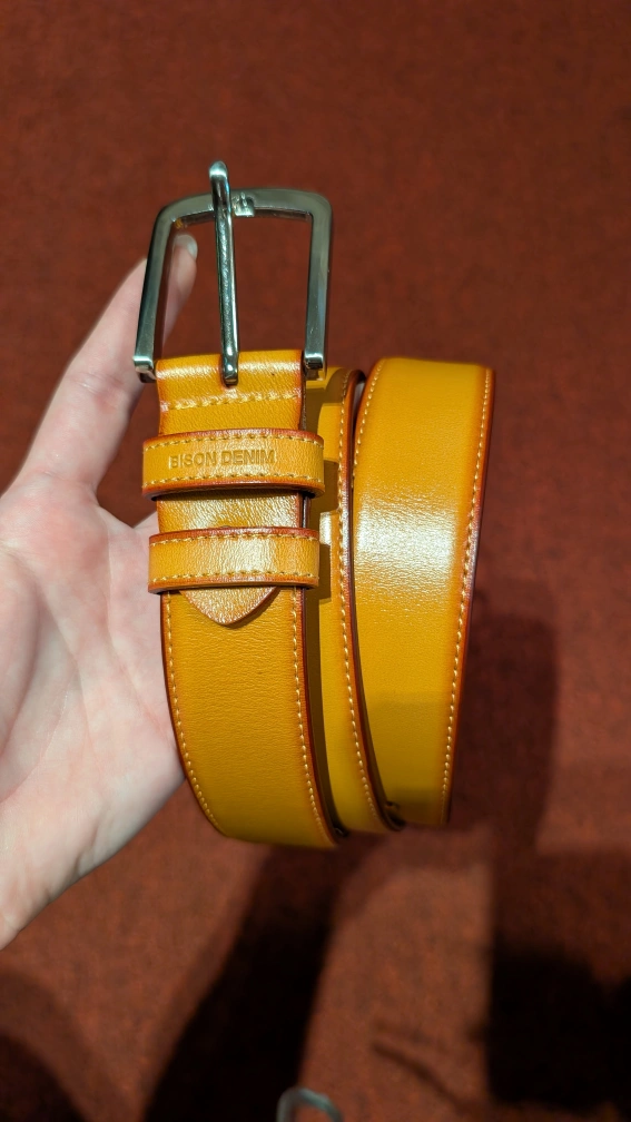 Selling a Bison Denim leather belt in excellent condition! It's a stylish accessory that would be a great addition to any wardrobe