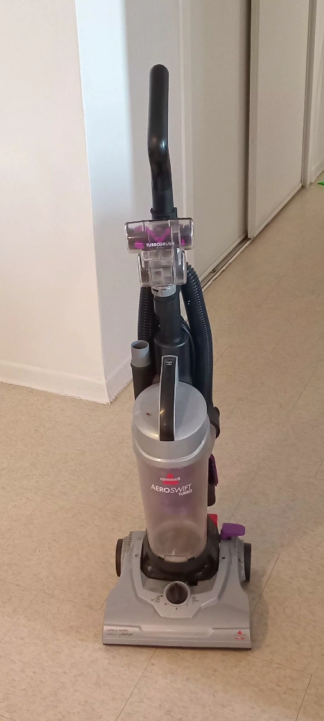 Selling a Bissell AeroSwift Turbo vacuum cleaner. It's in good working condition. The TurboBrush attachment is included for those tough-to-reach spots.