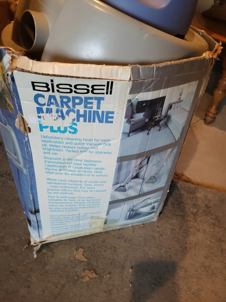Selling a Bissell Carpet Machine Plus. It's been used, but still works great for upholstery and carpet cleaning. Comes with the original box.