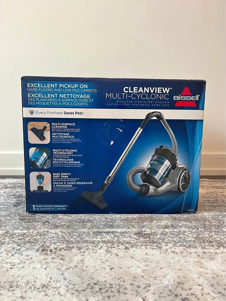 83Selling a brand new Bissell CleanView Multi-Cyclonic vacuum. ✅ Highlights: • Excellent suction on hard floors and low-pile carpets • Multi-cyclonic technology keeps suction strong as you clean • Easy-empty dirt tank — no bags to replace • Lightweight and easy to maneuver • Great for homes, apartments, or anyone with pets • Includes all standard attachments It’s a solid, reliable vacuum and retails for around $160–$180. I’ll let it go for $100 OBO 📍Pickup near Sherway gardens. Message me if you’d like to see it!