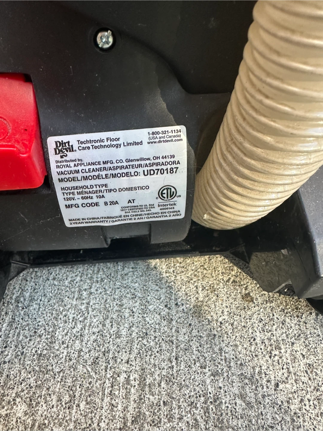 Selling a Dirt Devil Powermax vacuum cleaner, model UD70187. It's a household type vacuum cleaner. Works great!