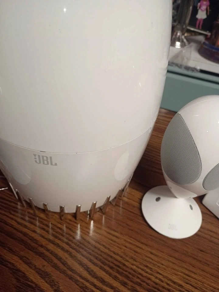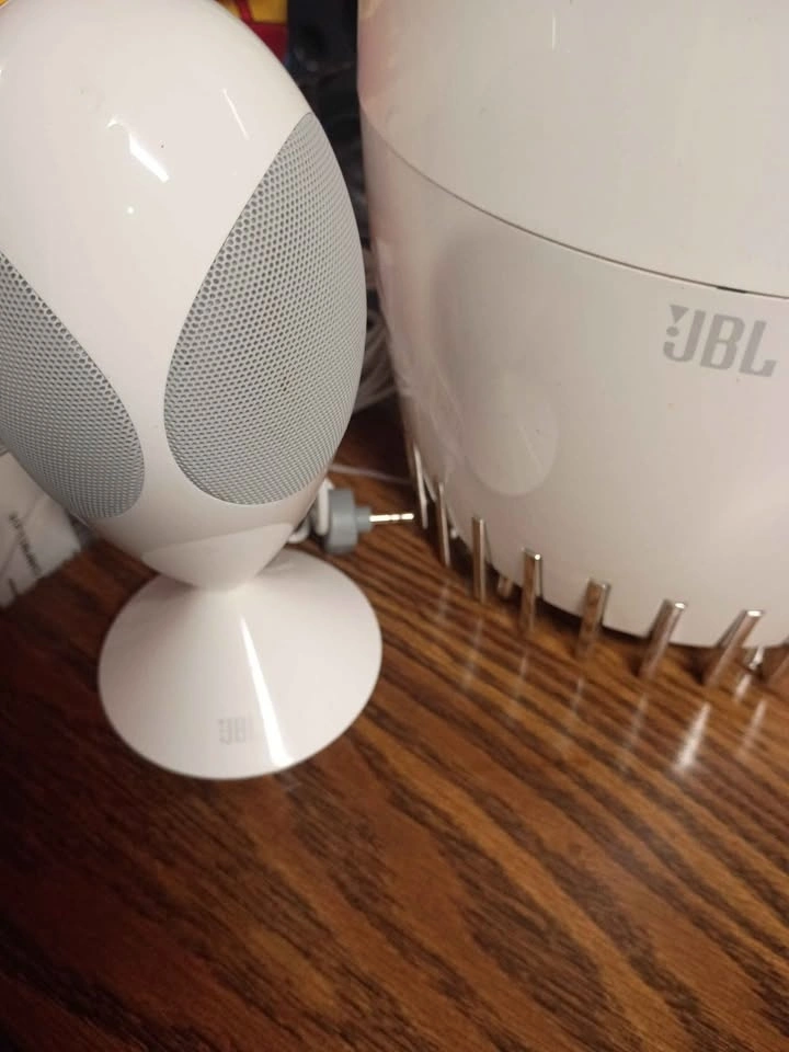 JBL Encounter 2.1 Sound System, a top-of-the-line multimedia system that delivers superb audio quality. With wired connectivity, this 2.1 Channel system comes with two egg-shaped white speakers and a subwoofer that produce rich, immersive sound. The touch control feature allows for easy operation, while the AUX audio input ensures compatibility with a wide range of devices.
