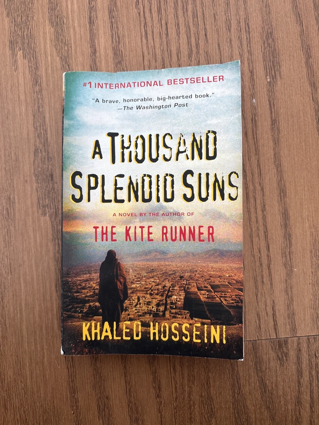 This is Khaled Hosseini's novel, A Thousand Splendid Suns. It's a story by the author of The Kite Runner. This international bestseller has been called 'A brave, honorable, big-hearted book.'