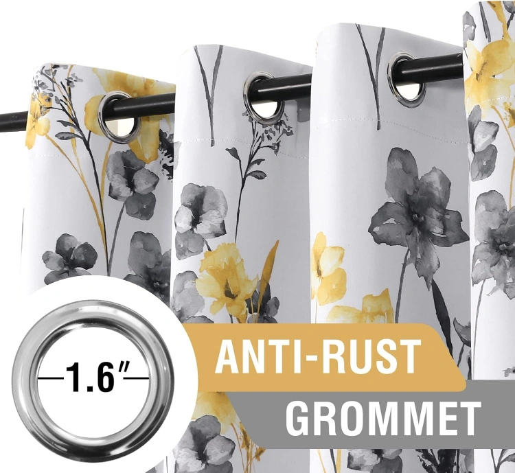 100% Blackout Curtains with Grommet Top - Grey and Yellow Floral