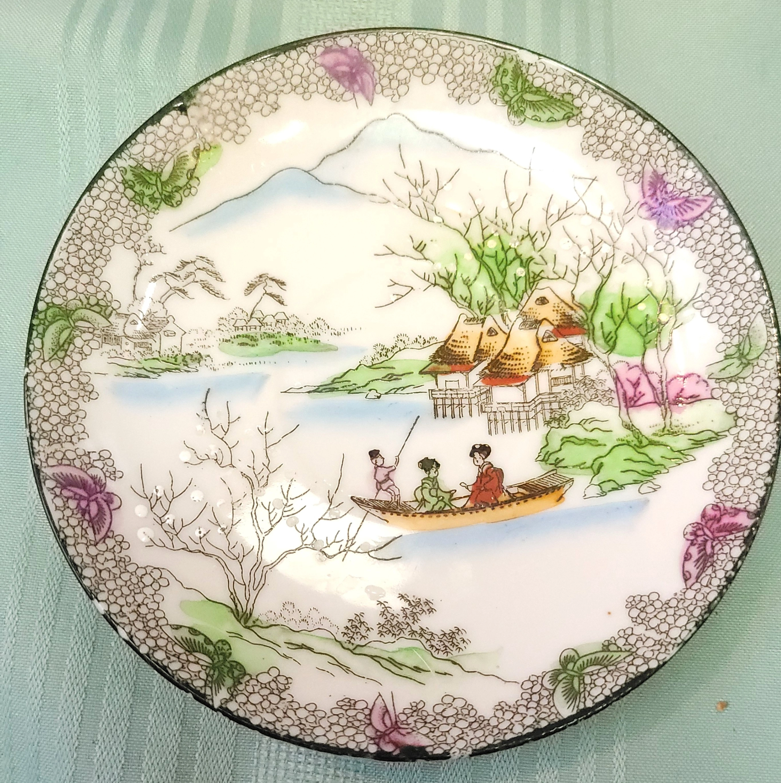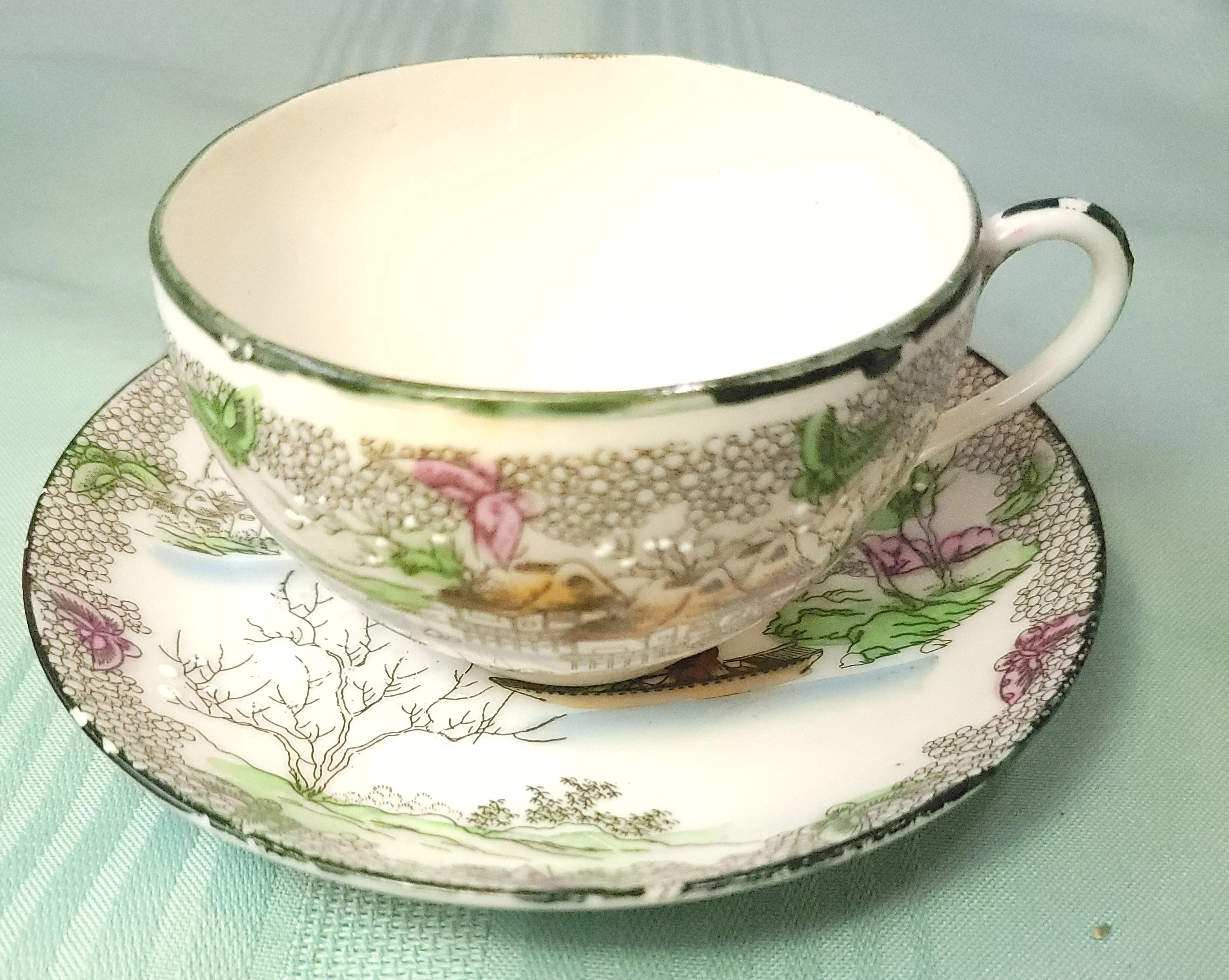 Antique Japanese Hand Painted Tea Cup & Saucer - 1920s Landscape