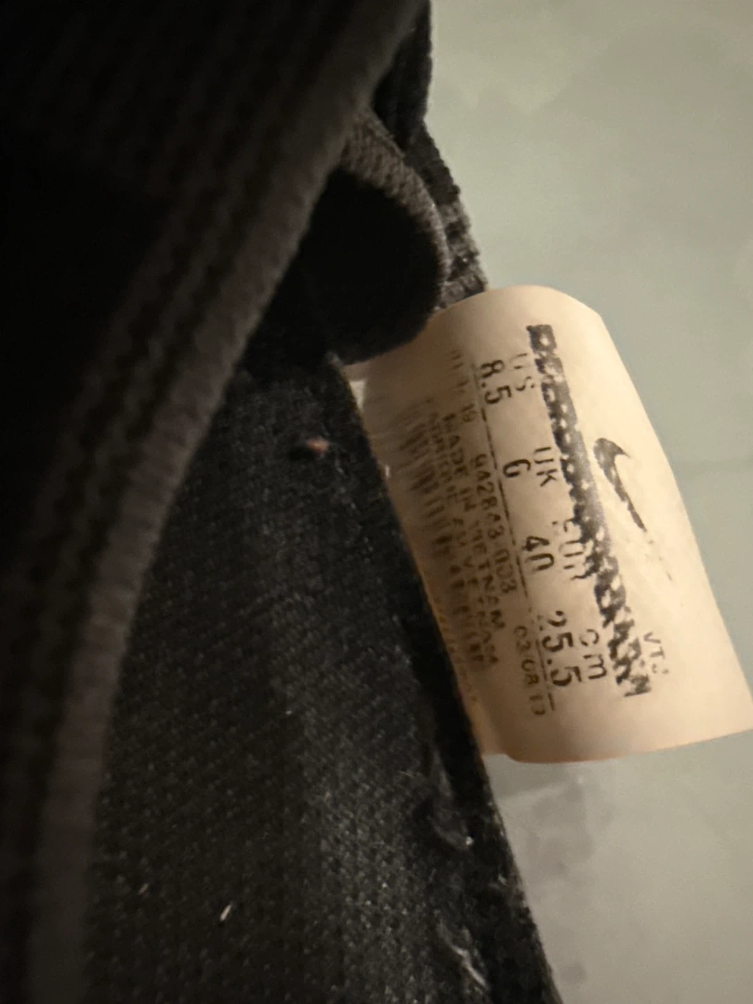 These are Nike Air VaporMax Flyknit 3 running shoes in black. They feature a breathable knit upper and a cushioned VaporMax Air sole for comfort. The size is US 8.5, UK 6, EU 40, and CM 25.5.