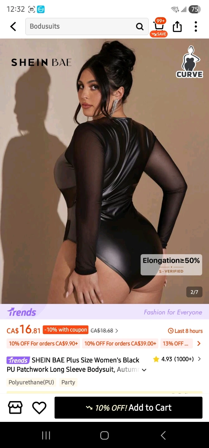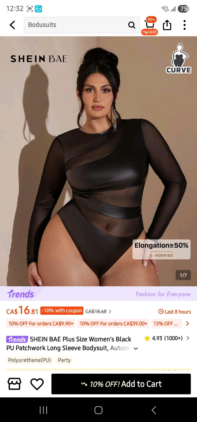 This is a SHEIN BAE Plus Size Women's Black PU Patchwork Long Sleeve Bodysuit. It features a PU material with mesh inserts and long sleeves. The size is US 14 (1XL).