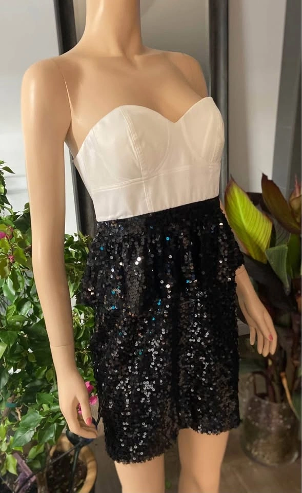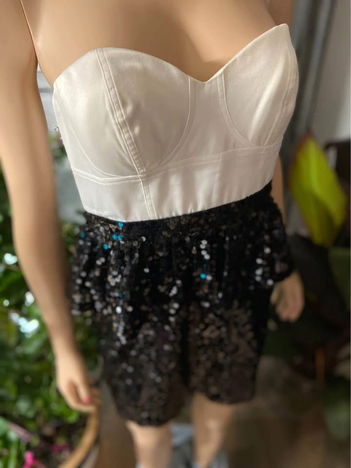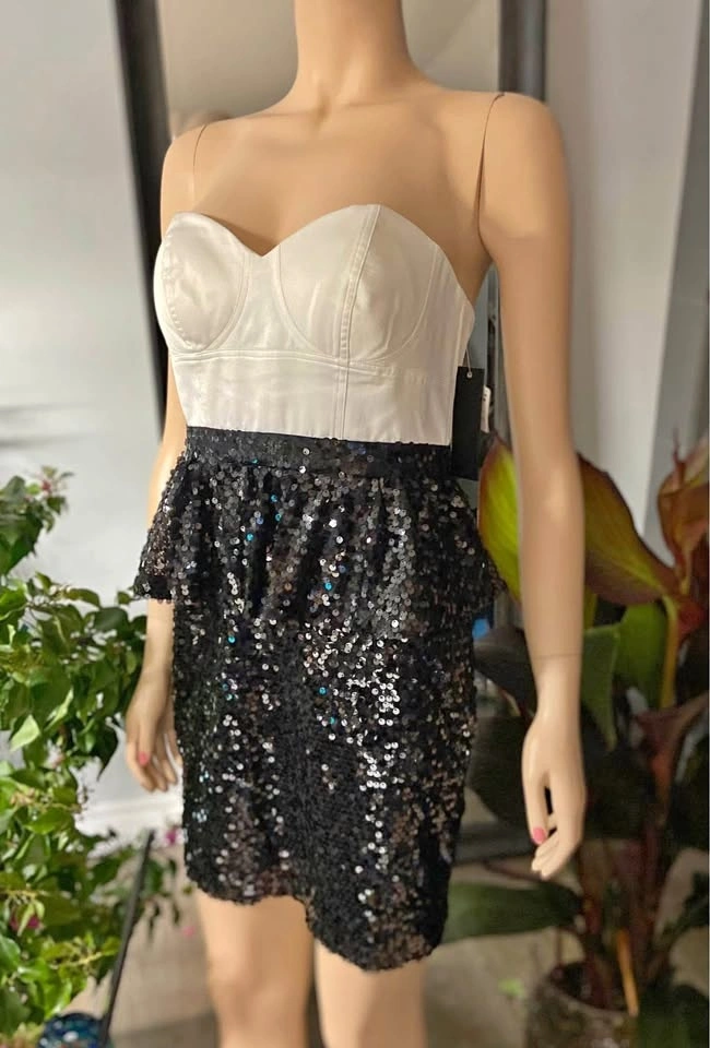 NWT Aqua Black Ivory Satin Sequined Strapless Dress 6 (508)