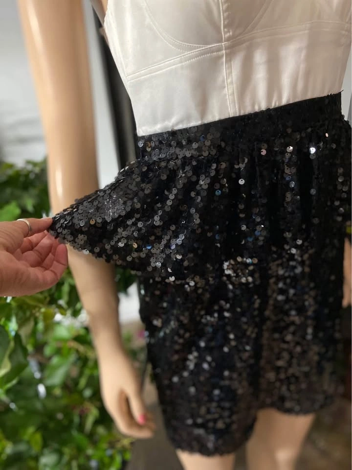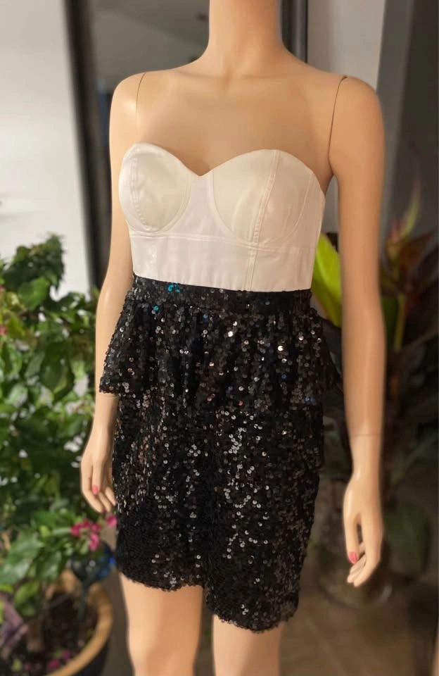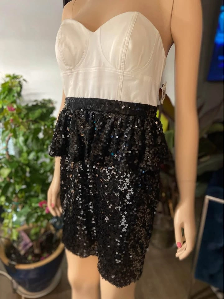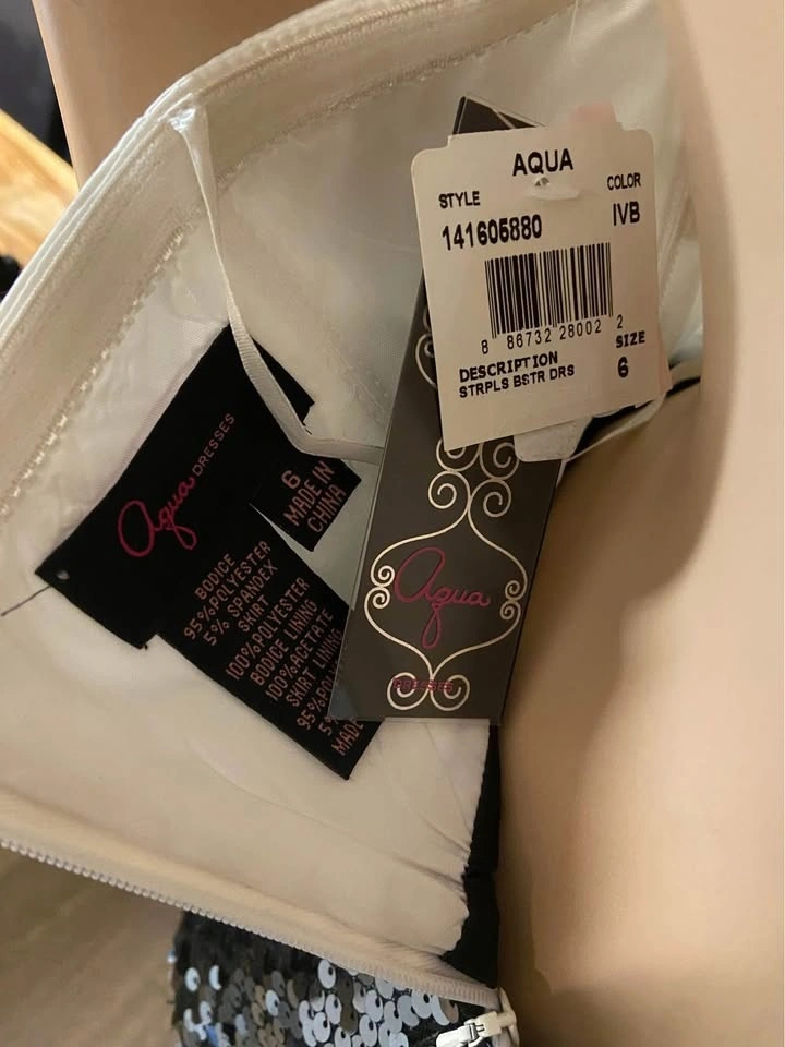 NWT Aqua Black Ivory Satin Sequined Strapless Dress 6 (508)