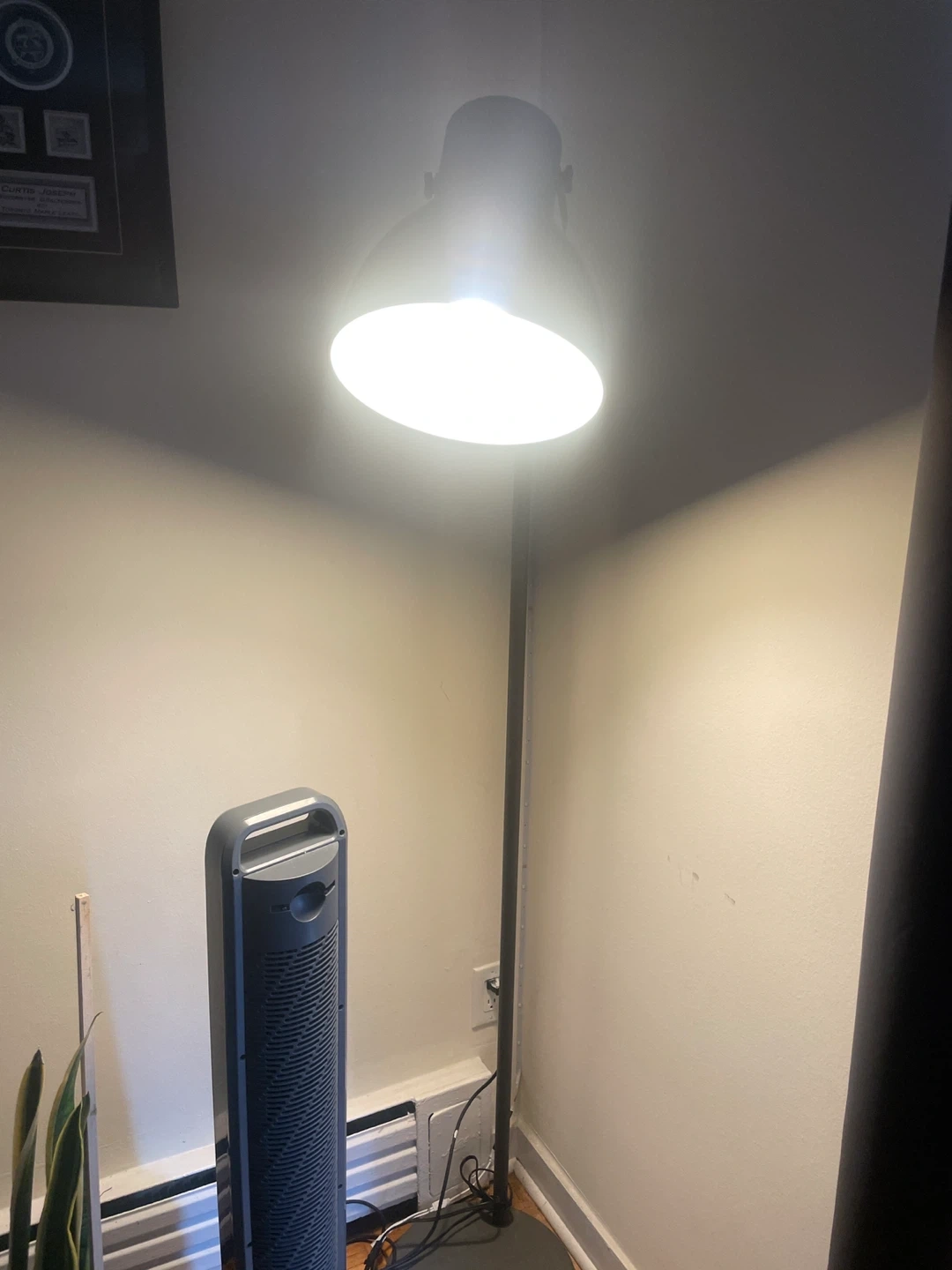 Selling a floor lamp that's in great condition! It has a sleek design and would look great in any room. It provides ample lighting and has a sturdy base