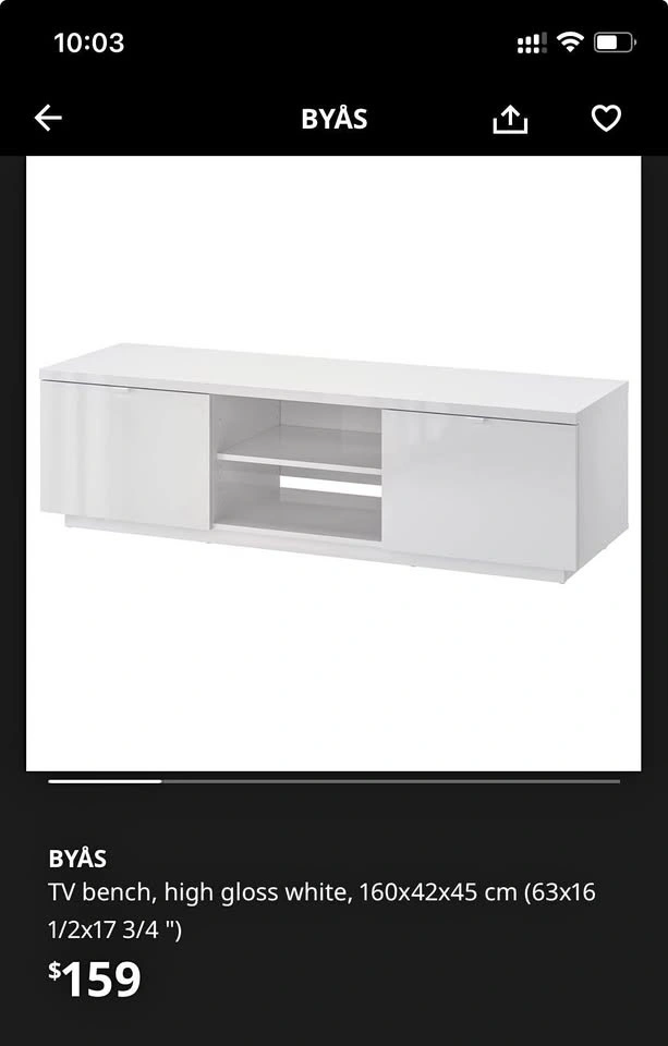 Buy & SellIkea TV unitIkea TV unit$70Tv bench high gloss whiteWHERE TO MEETCheck LocationView MapSELLERBhupeshMount Pleasant GO Station161 review1 chats·0 favorites·18 viewsSEND CHAT TO SELLERHi Bhupesh! I’m interested in your listing.Hi Bhupesh! I’m interested in your listing.Get the Karrot app to chatSign In to chat