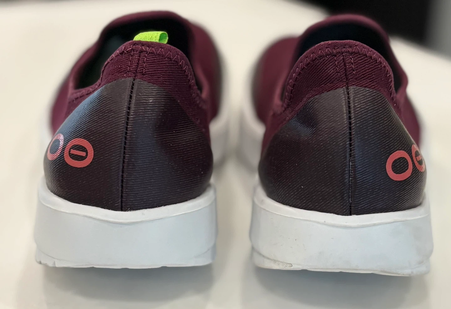OOFOS EEzee burgundy slip on shoes. These are women’s 9 They're made in Vietnam.soles shows some wear down