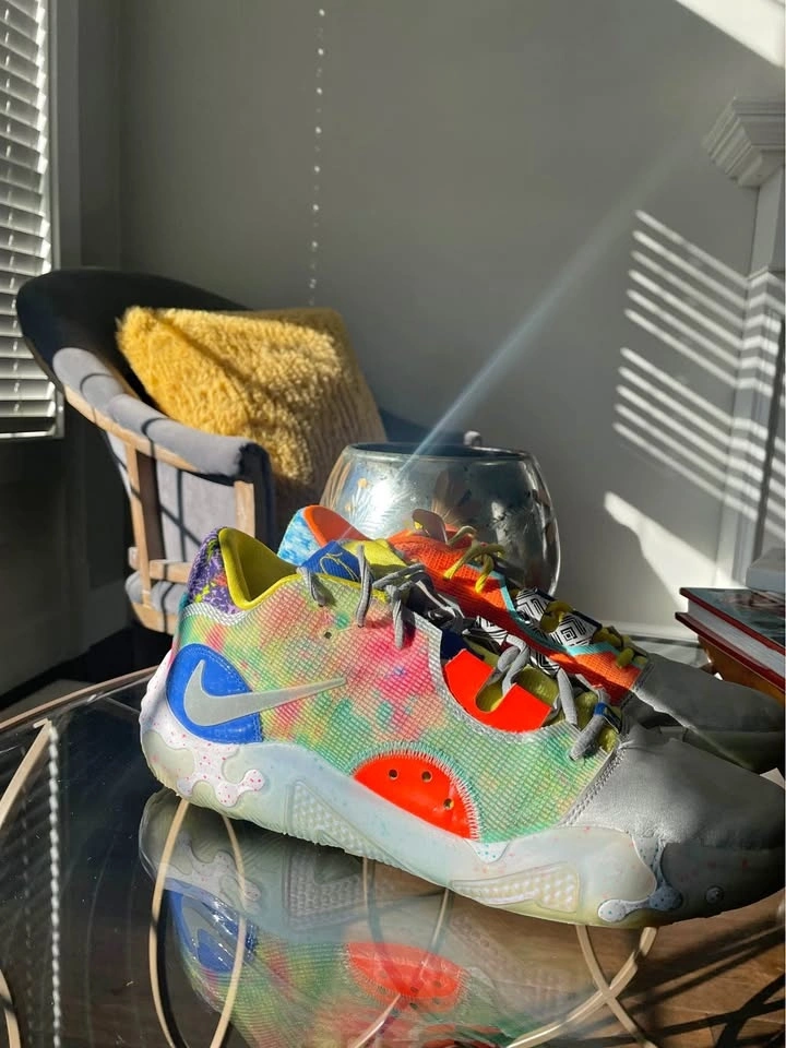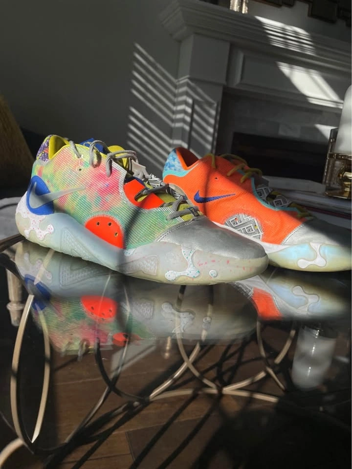 Selling a pair of Nike PG 6 basketball shoes in used, like-new condition. Lightly worn and well maintained. Worn only a few times. Clean uppers with minimal creasing. Soles still have excellent traction. No rips, tears, or sole separation. From a smoke-free home. Shoes only (no box).