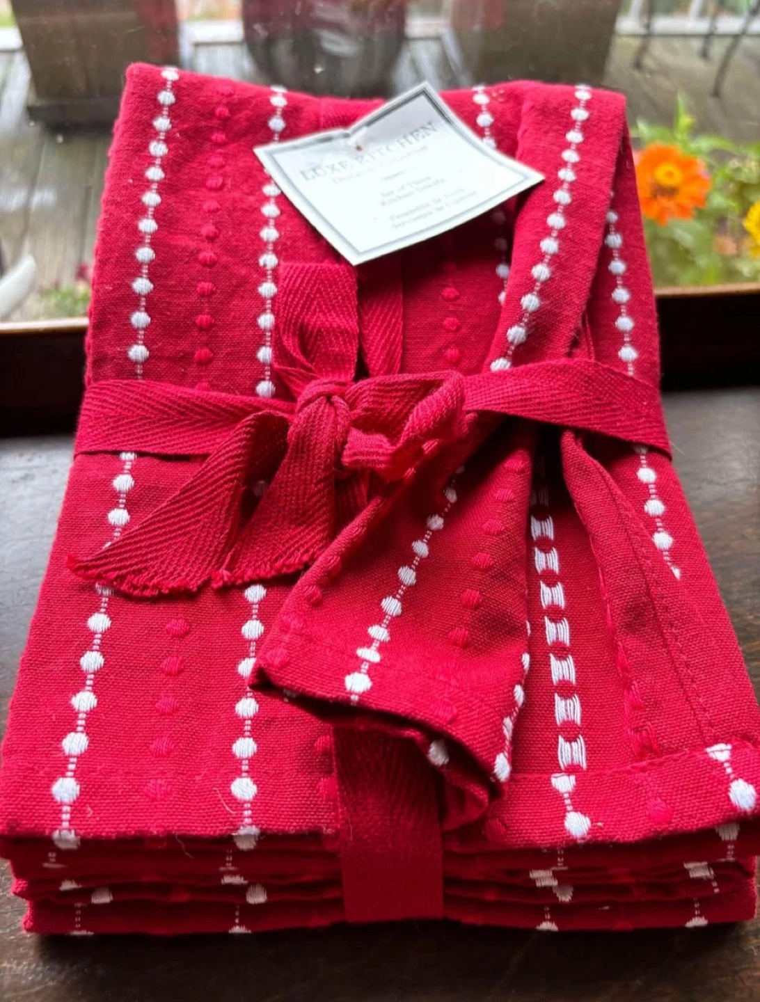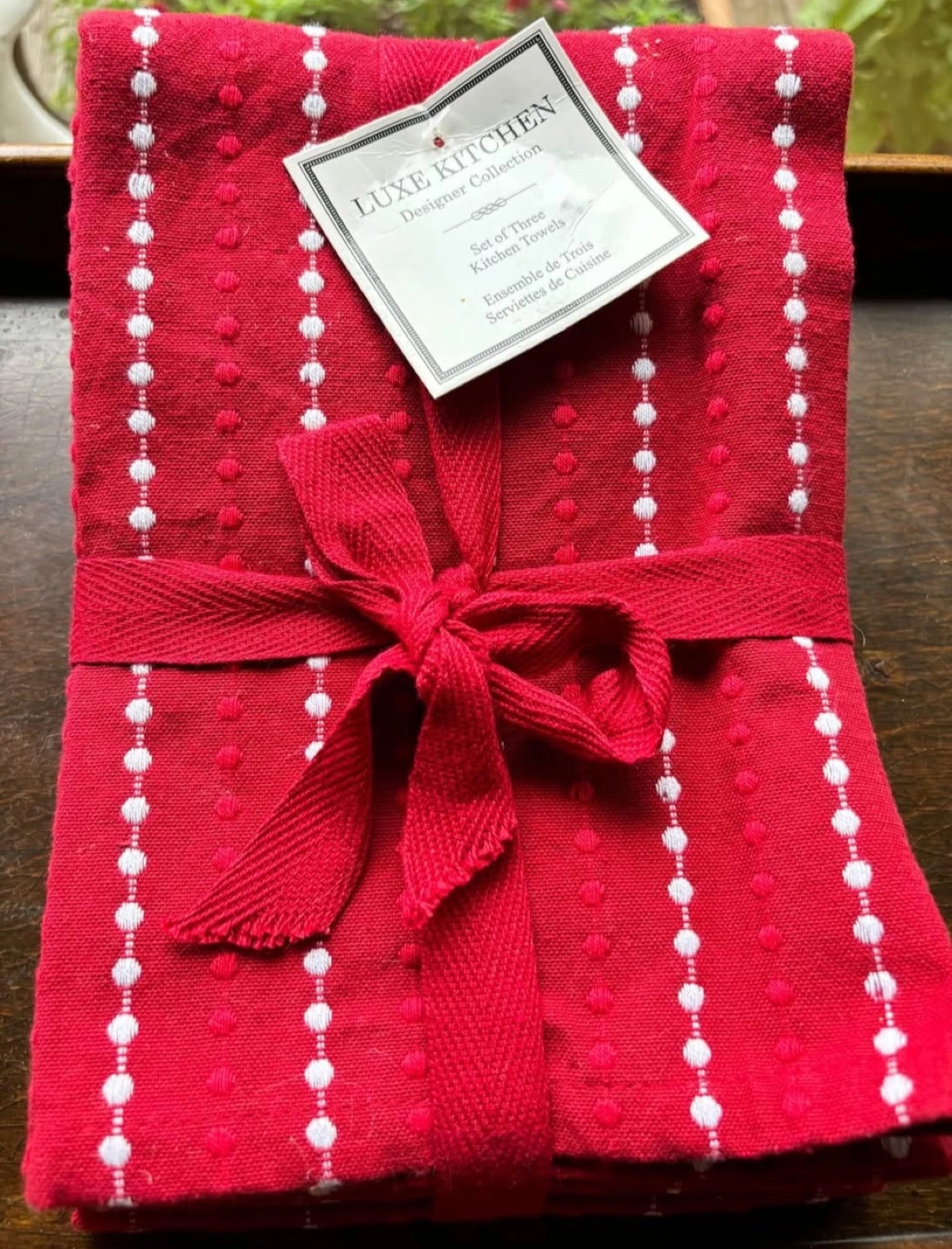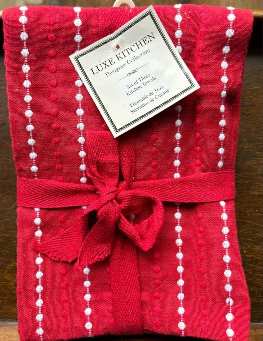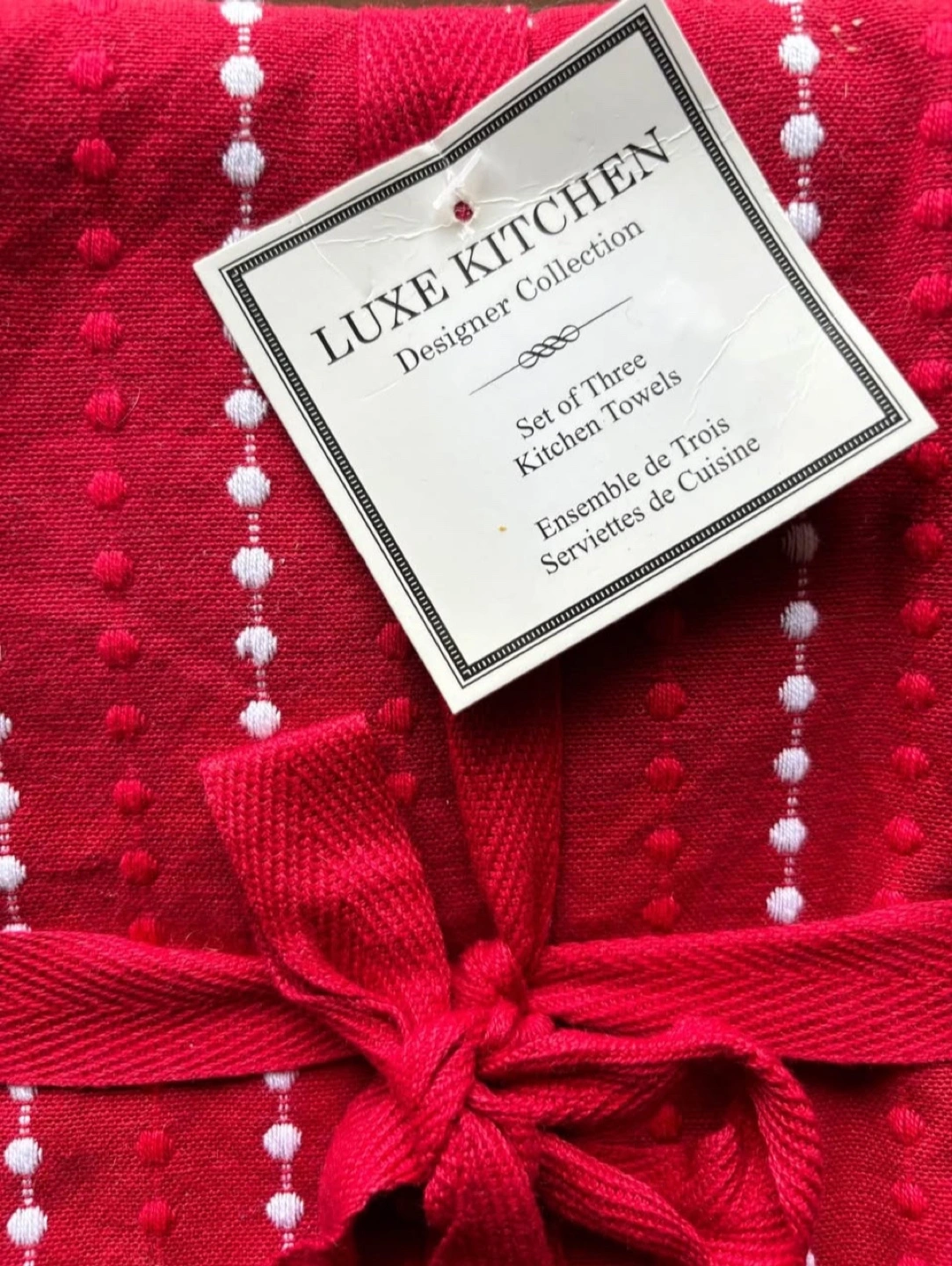Luxe Kitchen Designer Collection Red Kitchen Towels - Set of 3
