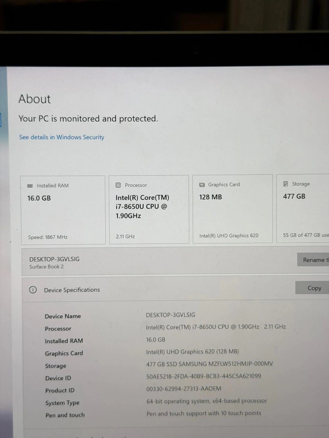 • Intel Core i7-8650U CPU