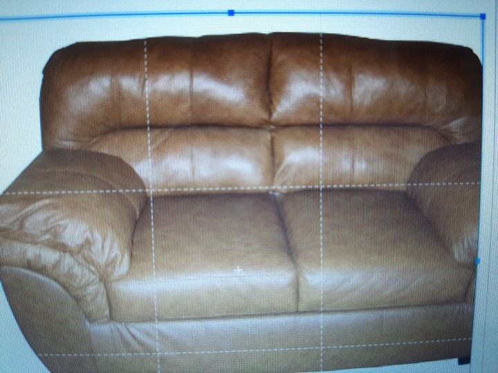 Tan leather loveseat with tags. Tan with orange tint. Approximate measurements: 38" depth, 38-39" height, 67.50-68.25" length. Local pick-up near Lefrak City in Corona, Queens, NY. Not entertaining Half-pricers.
