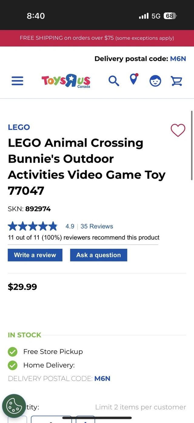 Build a fun outdoor scene with this LEGO Animal Crossing Bunnie's Outdoor Activities set, which contains 164 pieces. This set is new in box, ready for assembly and play! Original price is $29.99 plus tax
