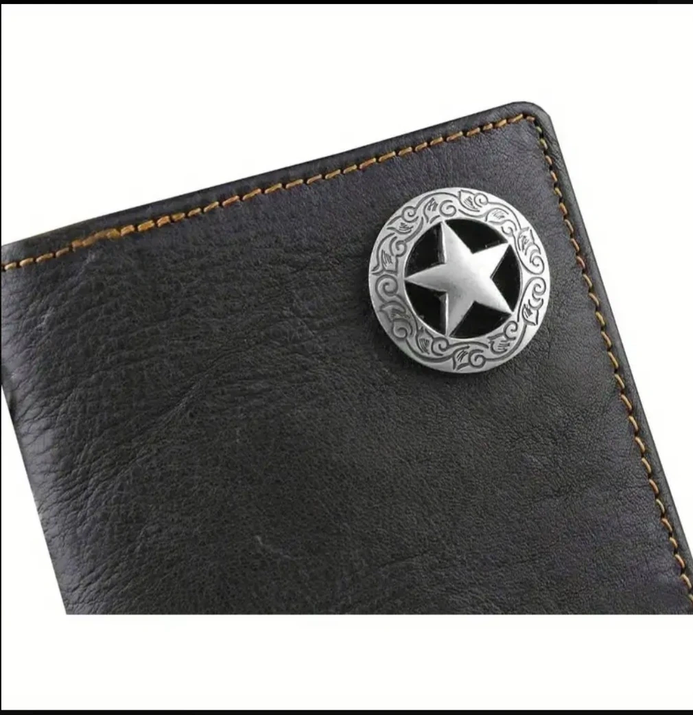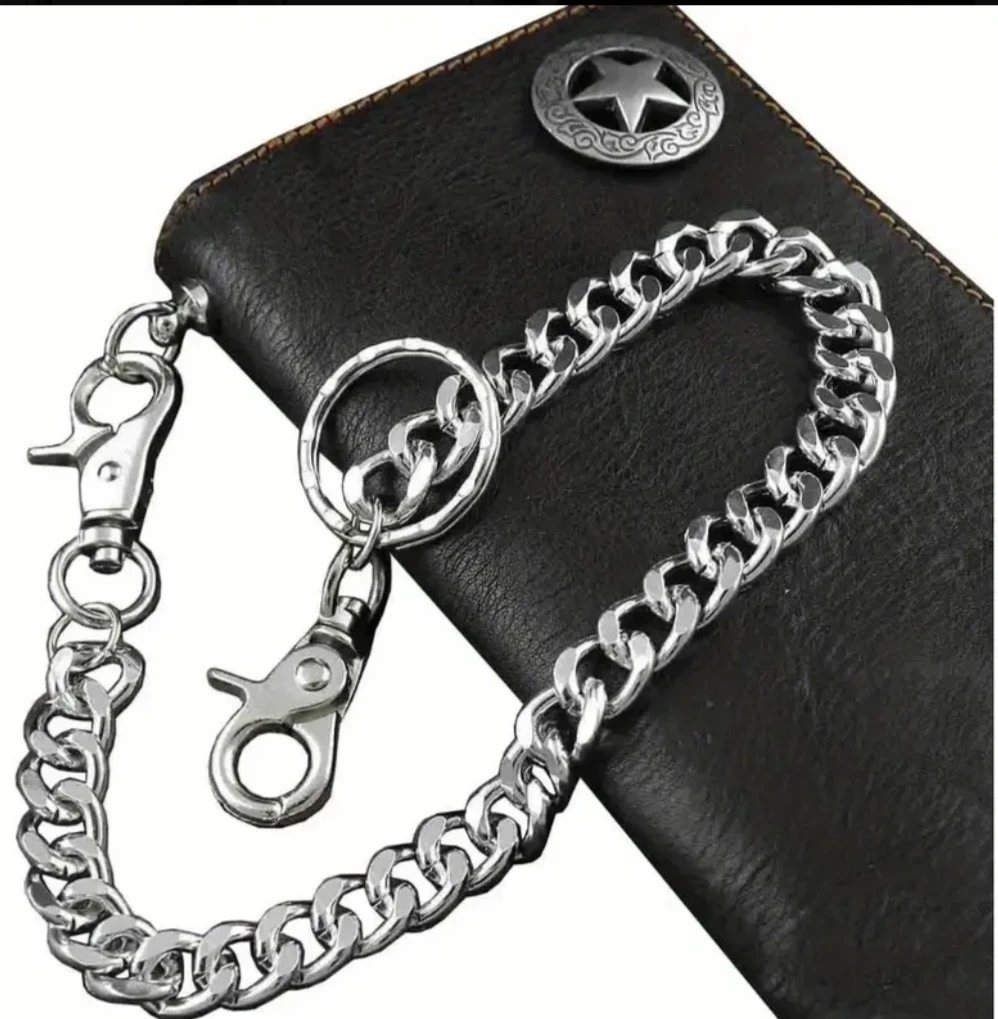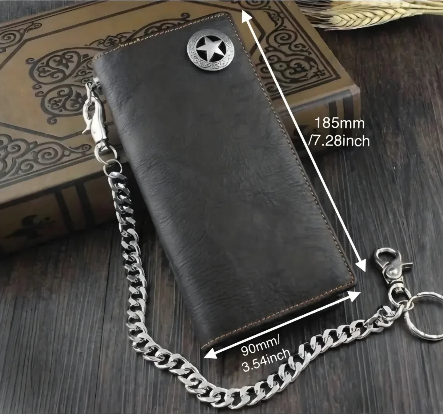I am selling a new Men's long Black Top Grain Leather wallet with Biker's chain.