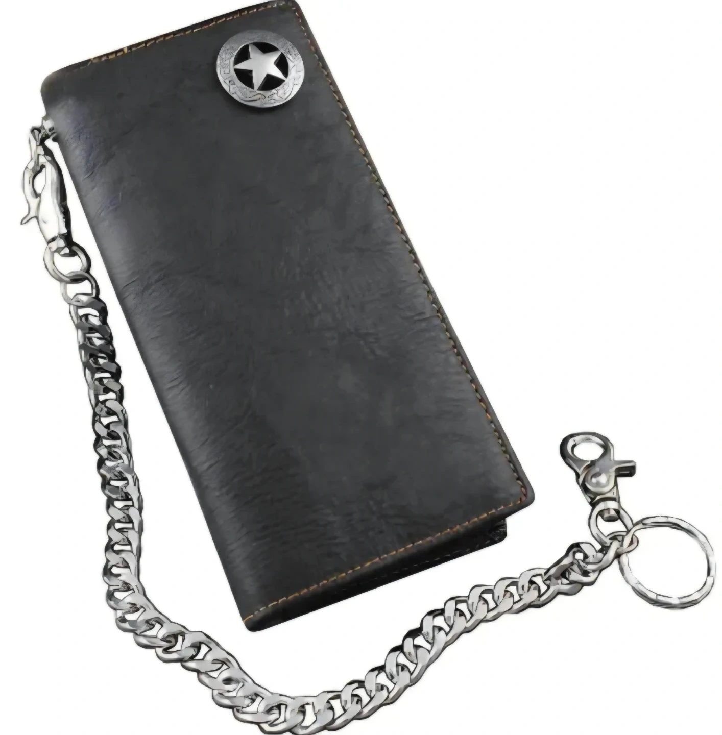 Men's Leather Wallet with π Concho Buckle & Biker's Chain.